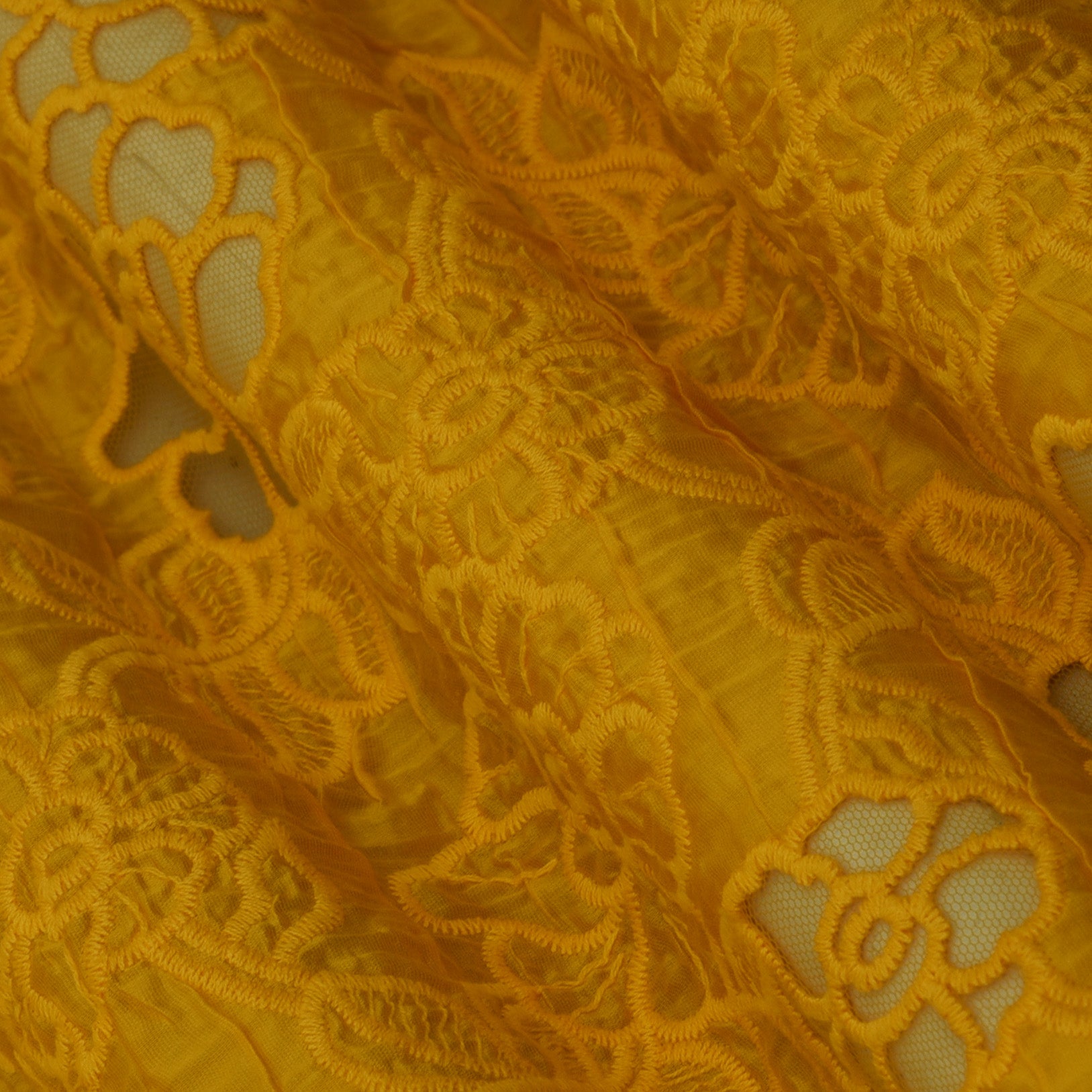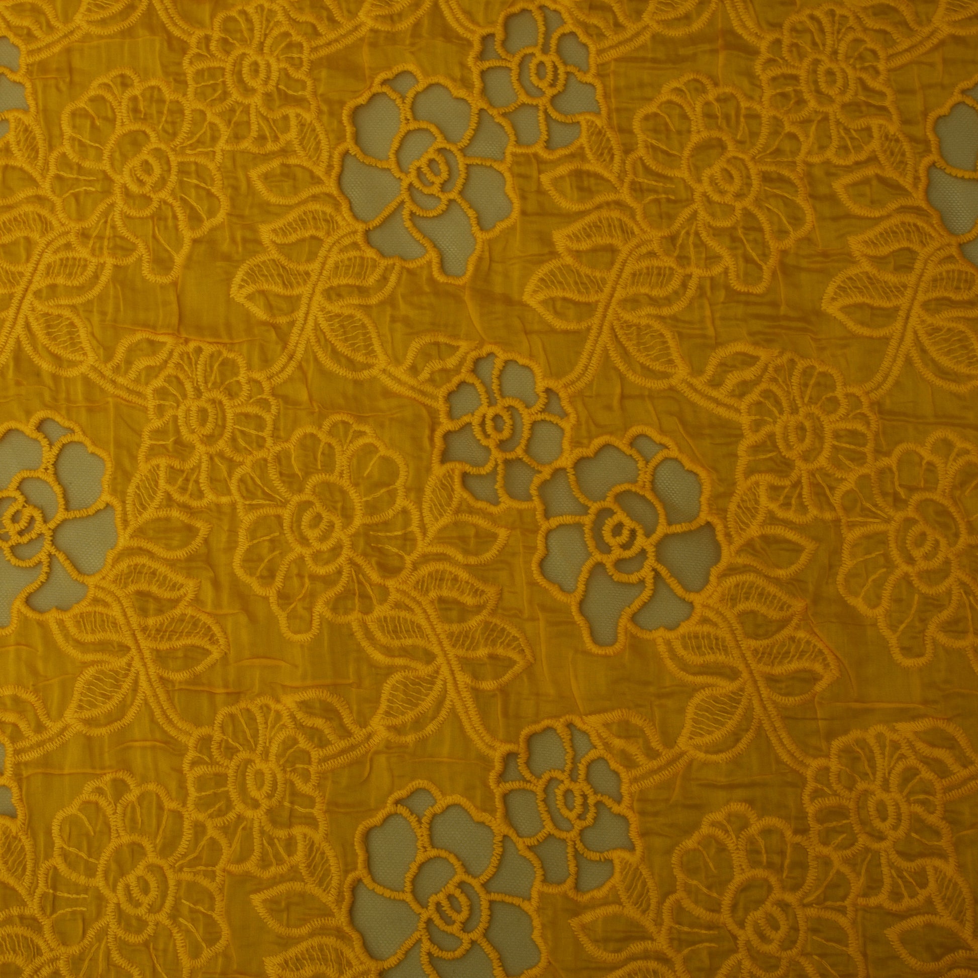 This Mustard Color Net Embroidery Fabric is expertly crafted with intricate embroidery, adding a touch of elegance to any garment. Made with high-quality net material, this fabric offers a delicate and lightweight feel while also providing a subtle stretch. Perfect for creating sophisticated and stylish ensembles.