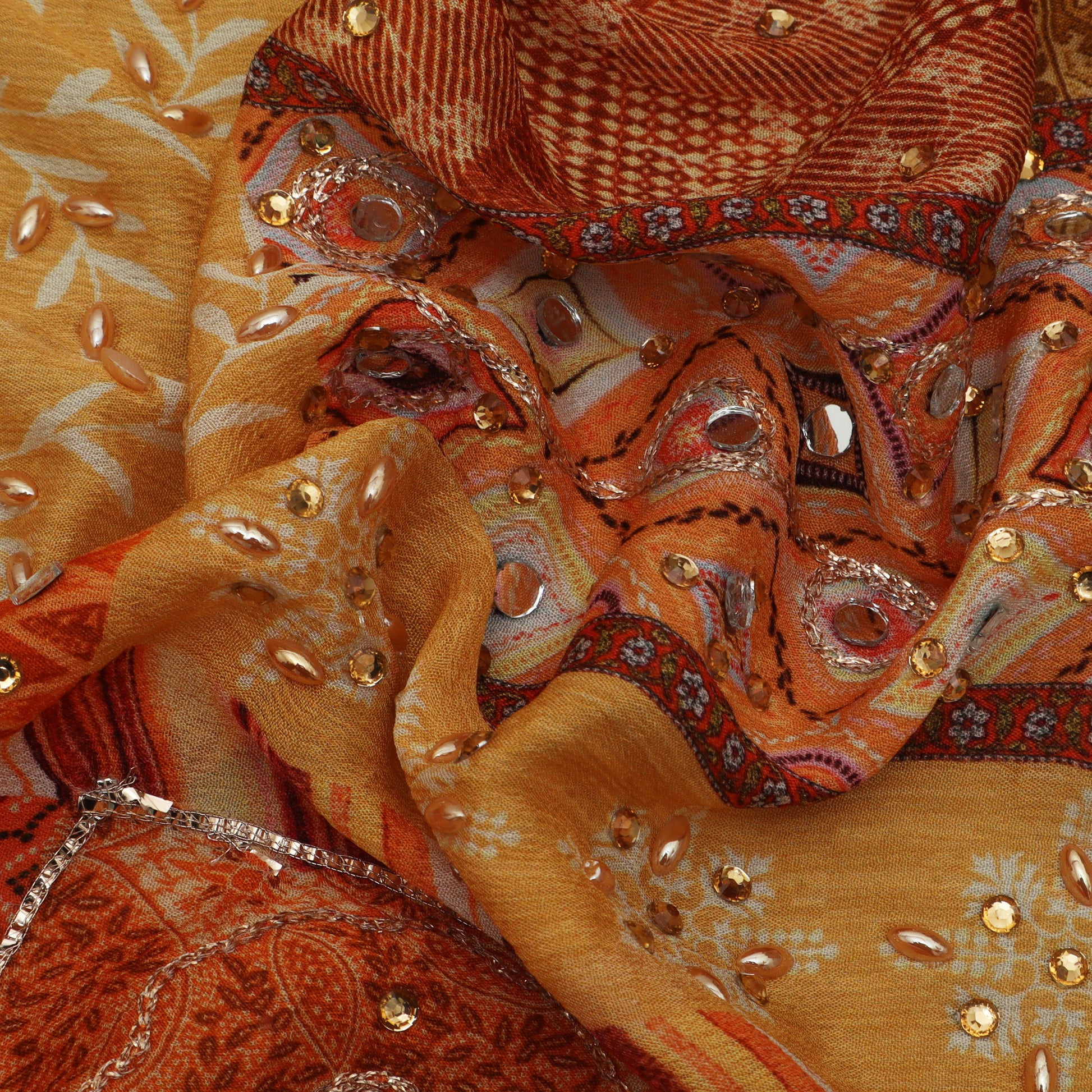 Muti-Color Chinon Chiffon Print Mirror Work Fabric
