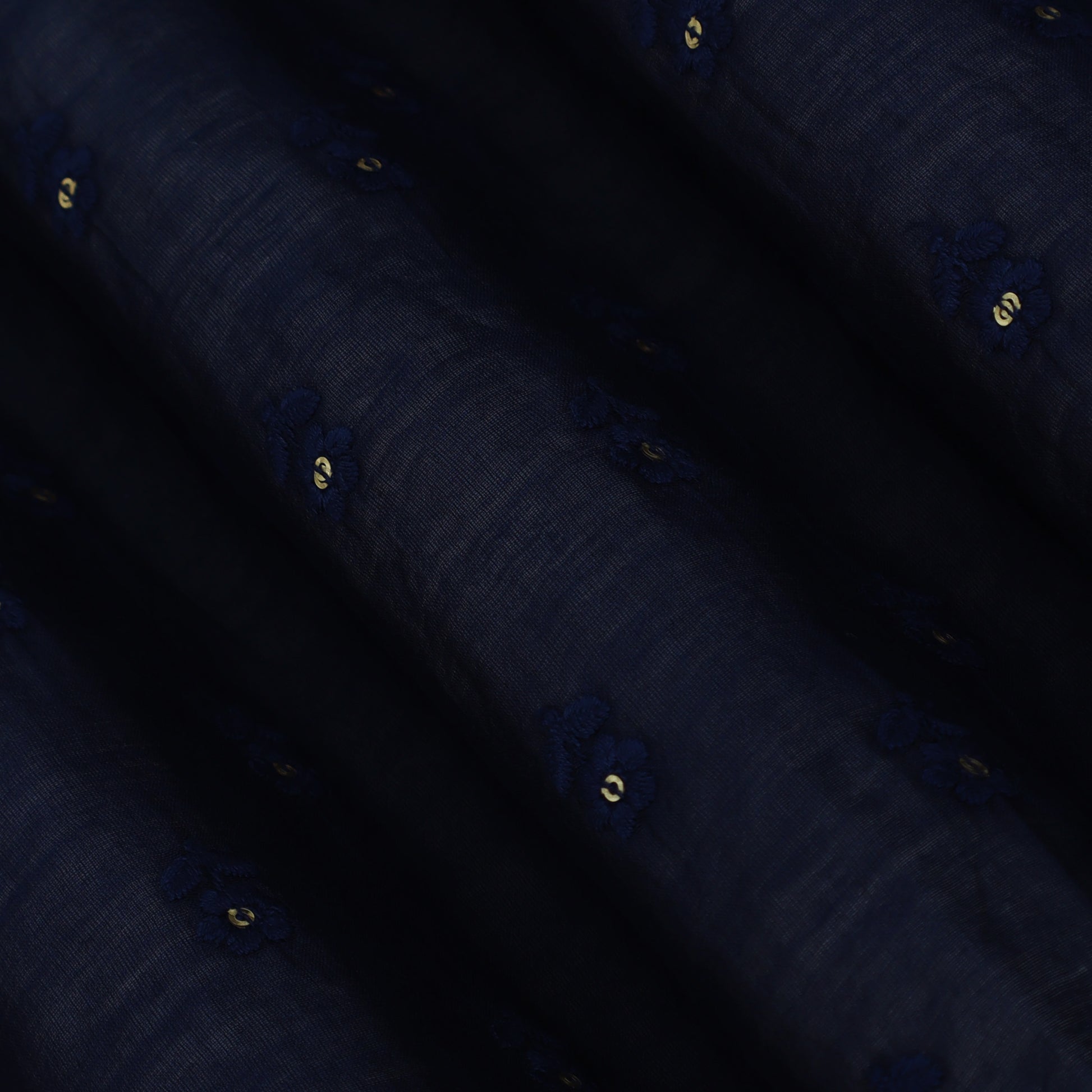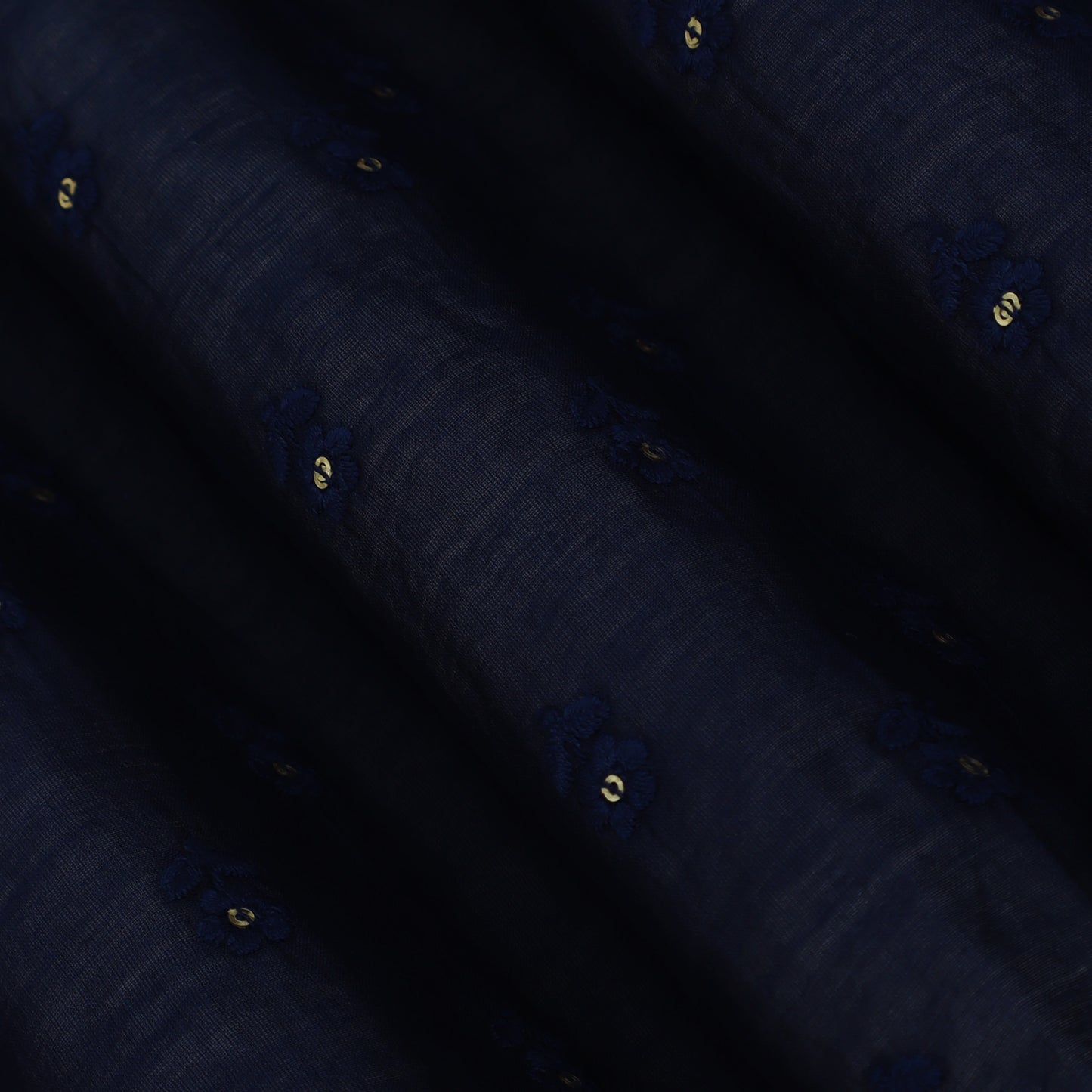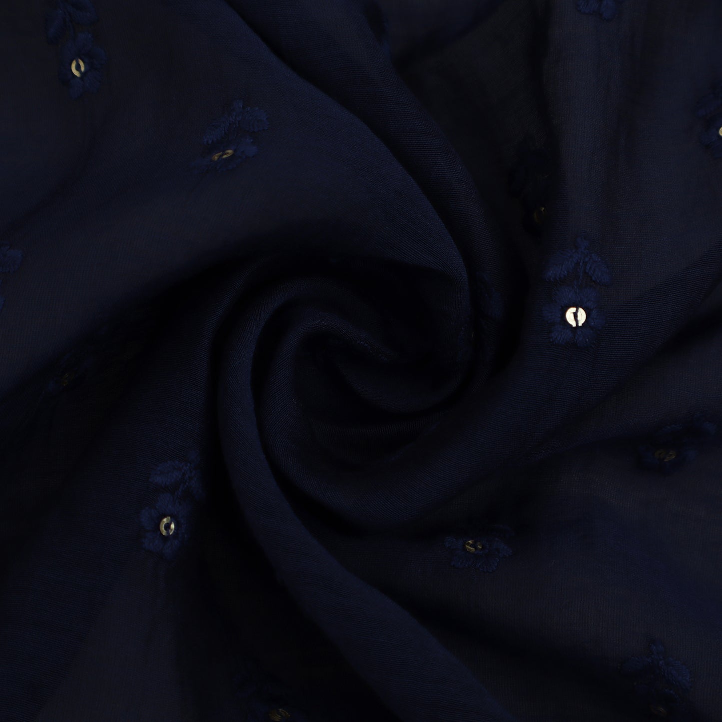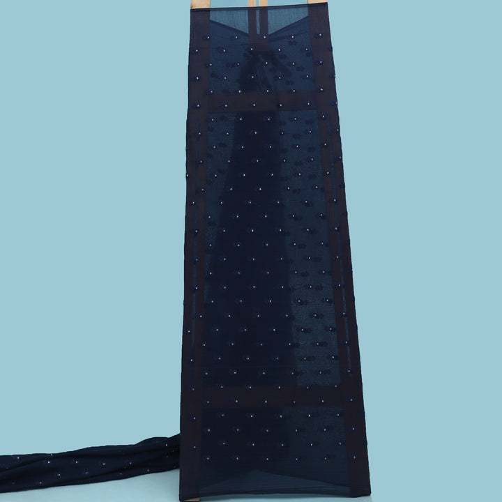 Expertly crafted from premium Chanderi fabric, this Navy Blue Color Chanderi Embroidery Fabric boasts intricate embroidery for a touch of elegance and sophistication. Its rich navy blue color adds a luxurious feel to any garment, making it a perfect choice for formal occasions. Enhance your wardrobe with this exquisite fabric.