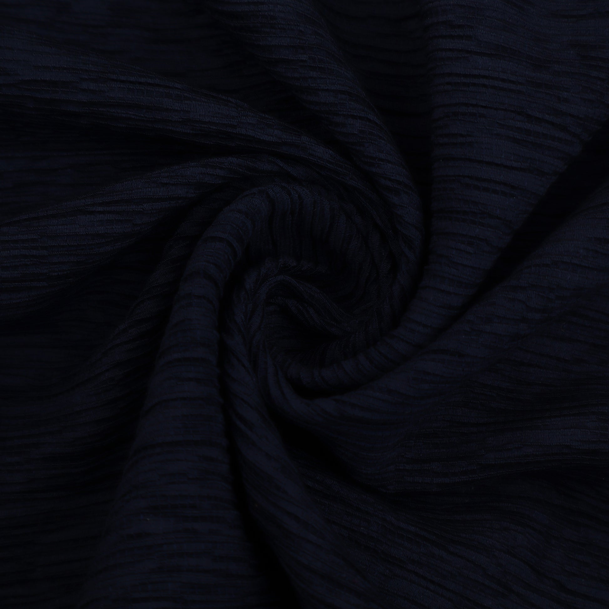 Experience the luxurious feel of our Navy Blue Color Crush Crepe Plain Fabric. With its smooth and elegant texture, this fabric is perfect for creating stunning dresses, blouses, and more. The navy blue color adds a touch of sophistication to any garment. Upgrade your wardrobe with this must-have fabric.