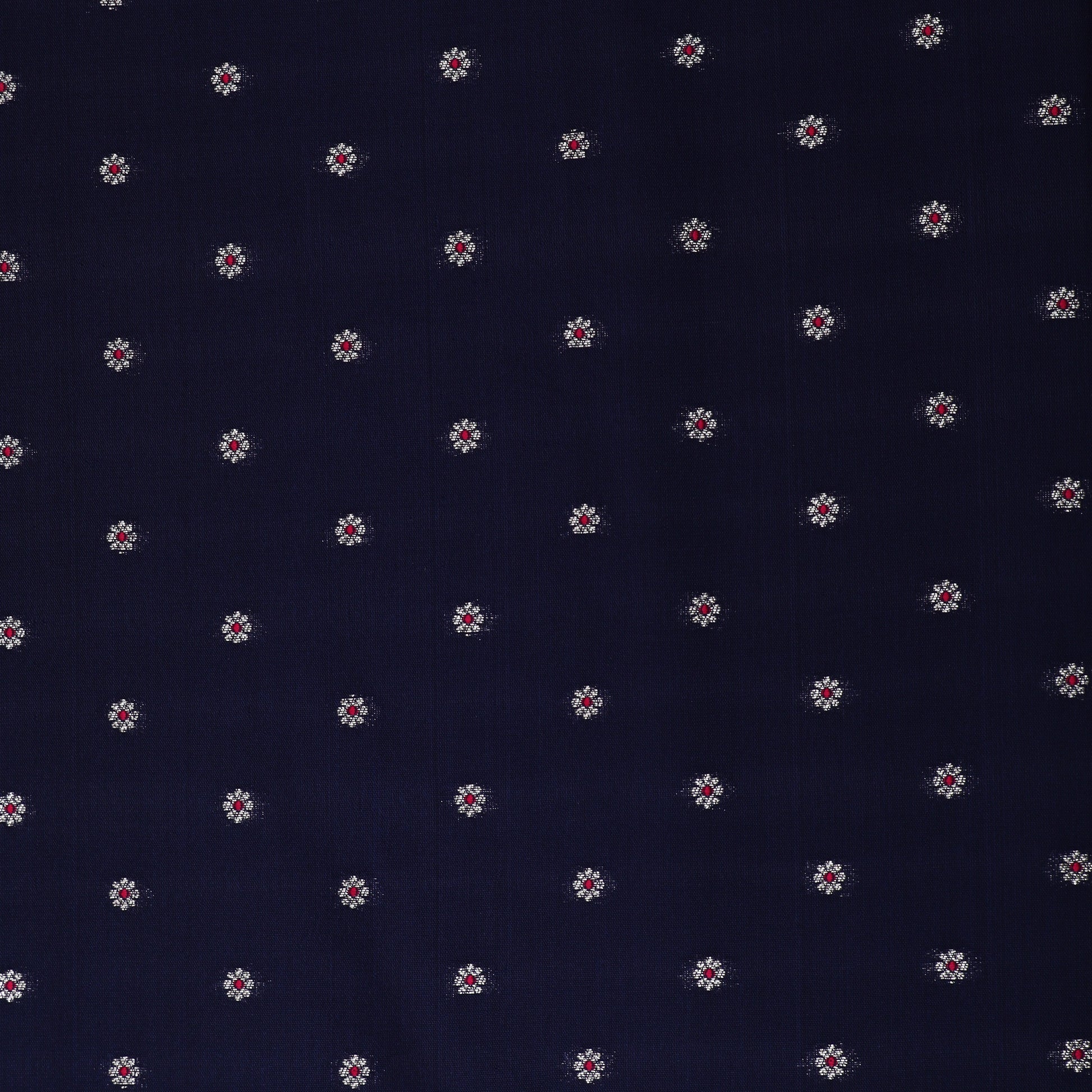 Expertly crafted with a rich navy blue color, this Katan Meena Brocade fabric adds a touch of elegance to any project. Made from high-quality materials, this fabric is durable and versatile, perfect for creating stunning garments or home decor. Elevate your creations with this luxurious fabric.