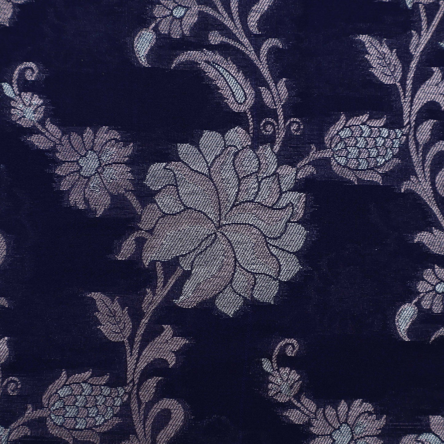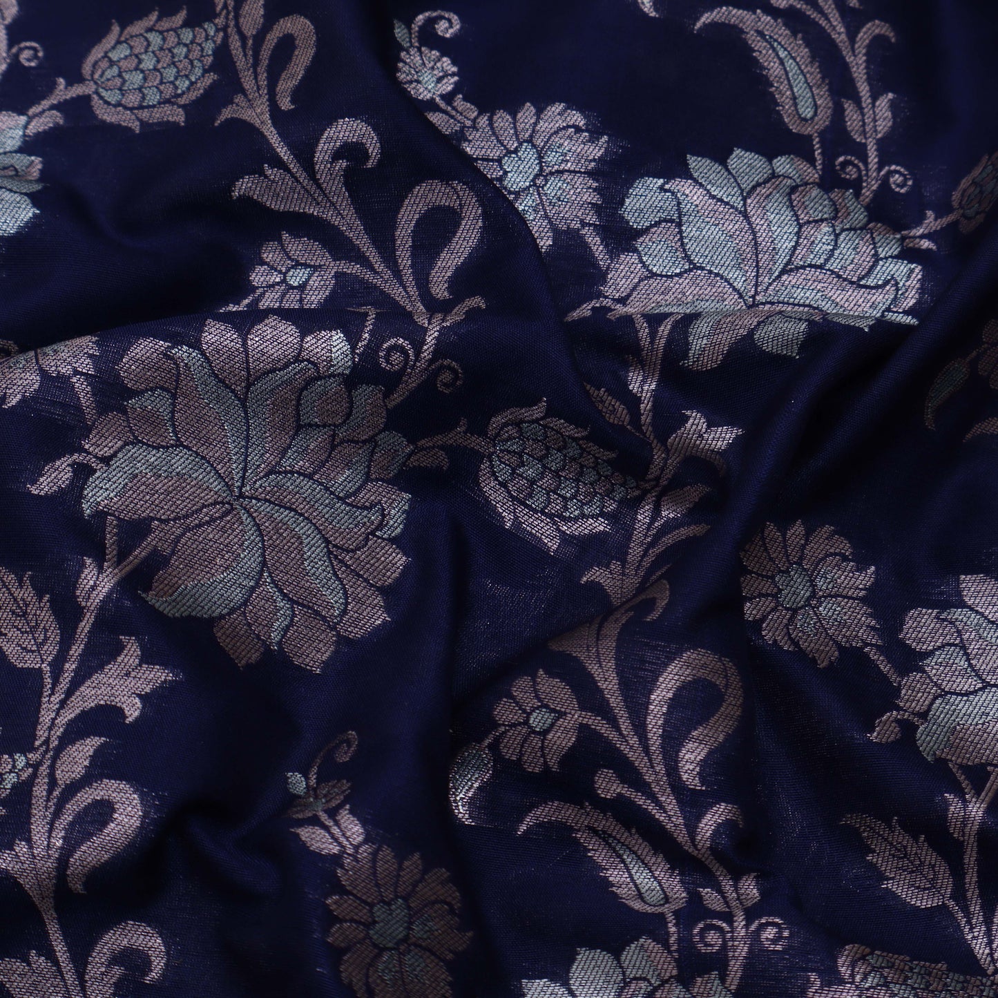 Navy Blue Color Silk Brocade Fabric