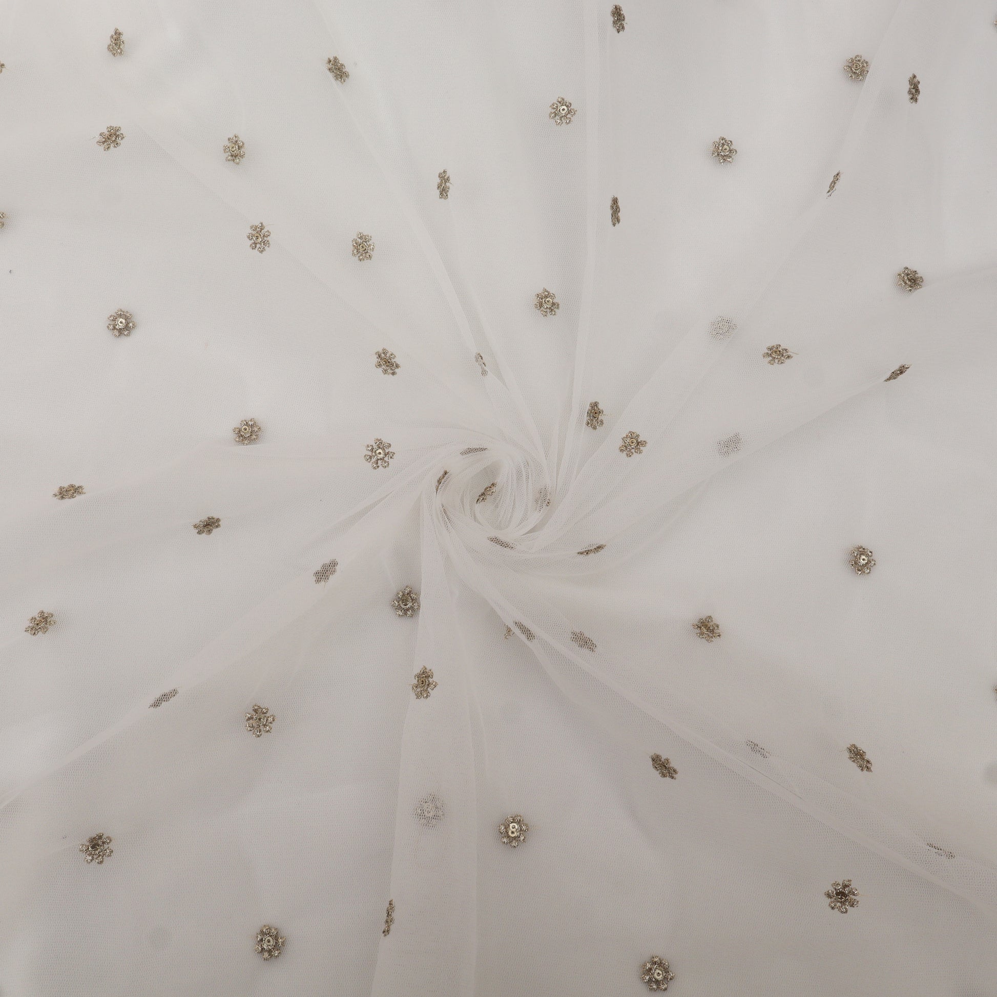 Enhance your ethnic collection with our elegant Net Booti Fabric, crafted to bring grace and sophistication to every design. This fabric features delicate booti motifs beautifully spread across a soft net base, creating a lightweight yet festive look.