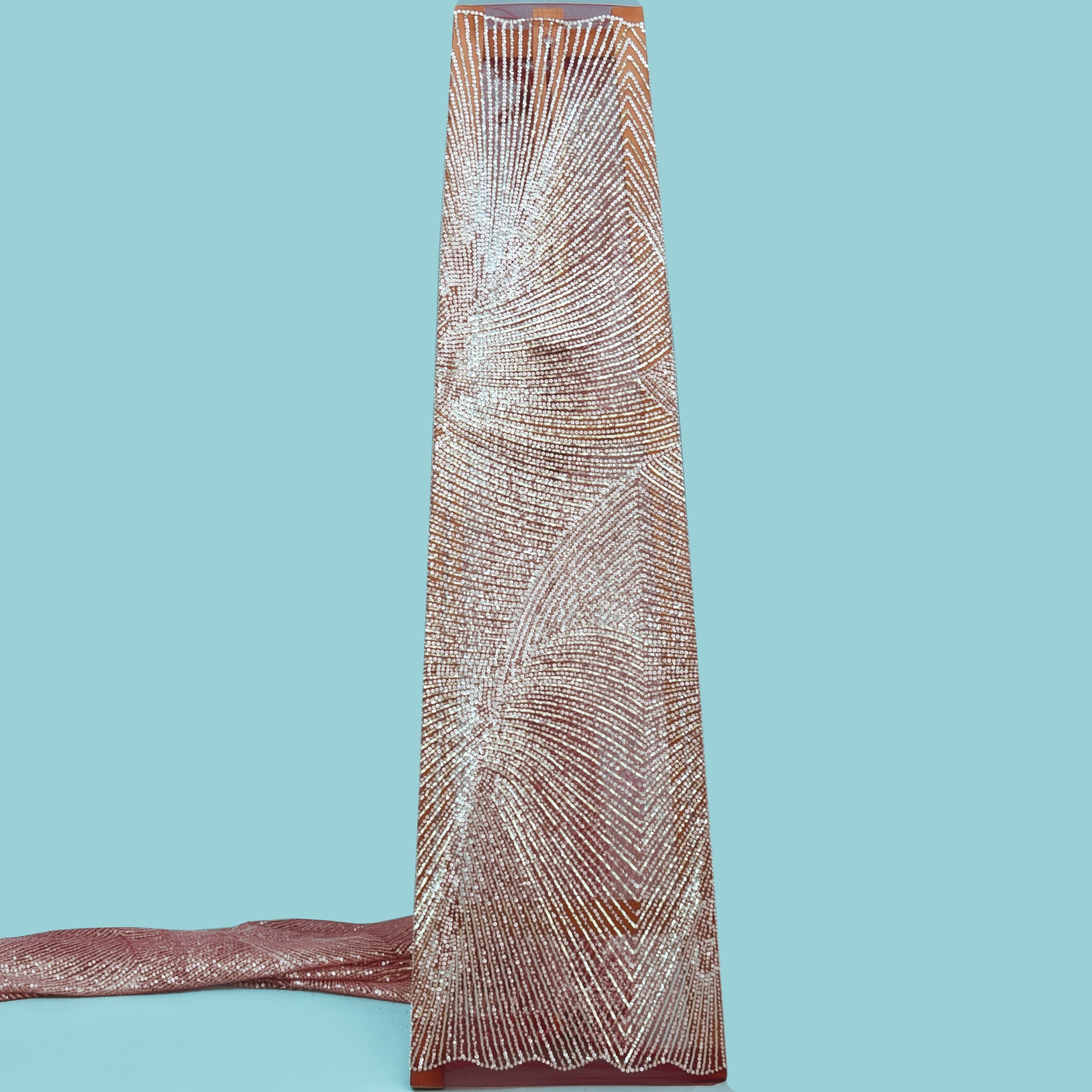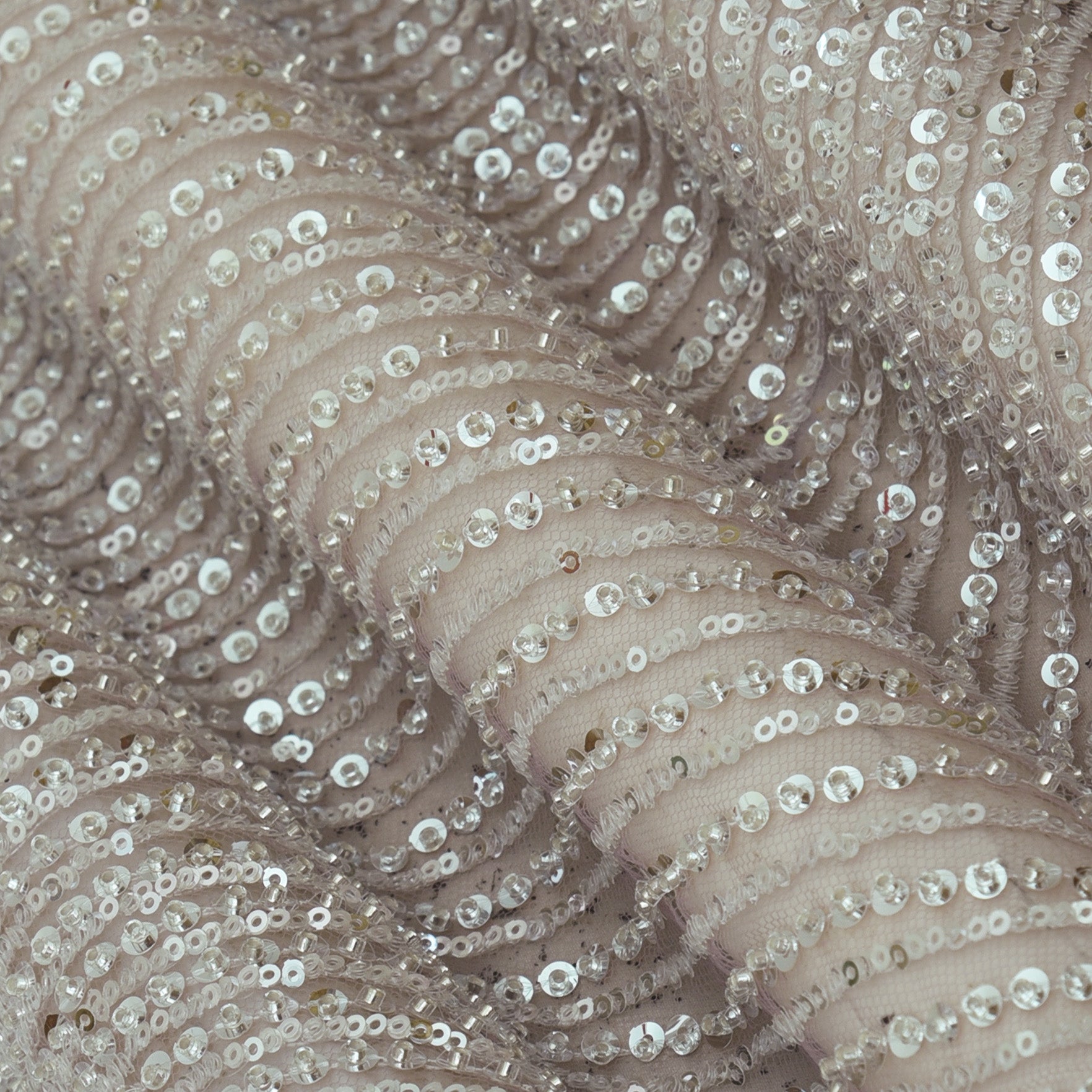 This imported fabric features delicate and detailed sequin embroidery on high-quality net material. Its intricate design adds a touch of elegance and sophistication to any project. With its imported quality, you can be confident in the durability and beauty of this fabric. Perfect for adding a touch of glamour to your creations.