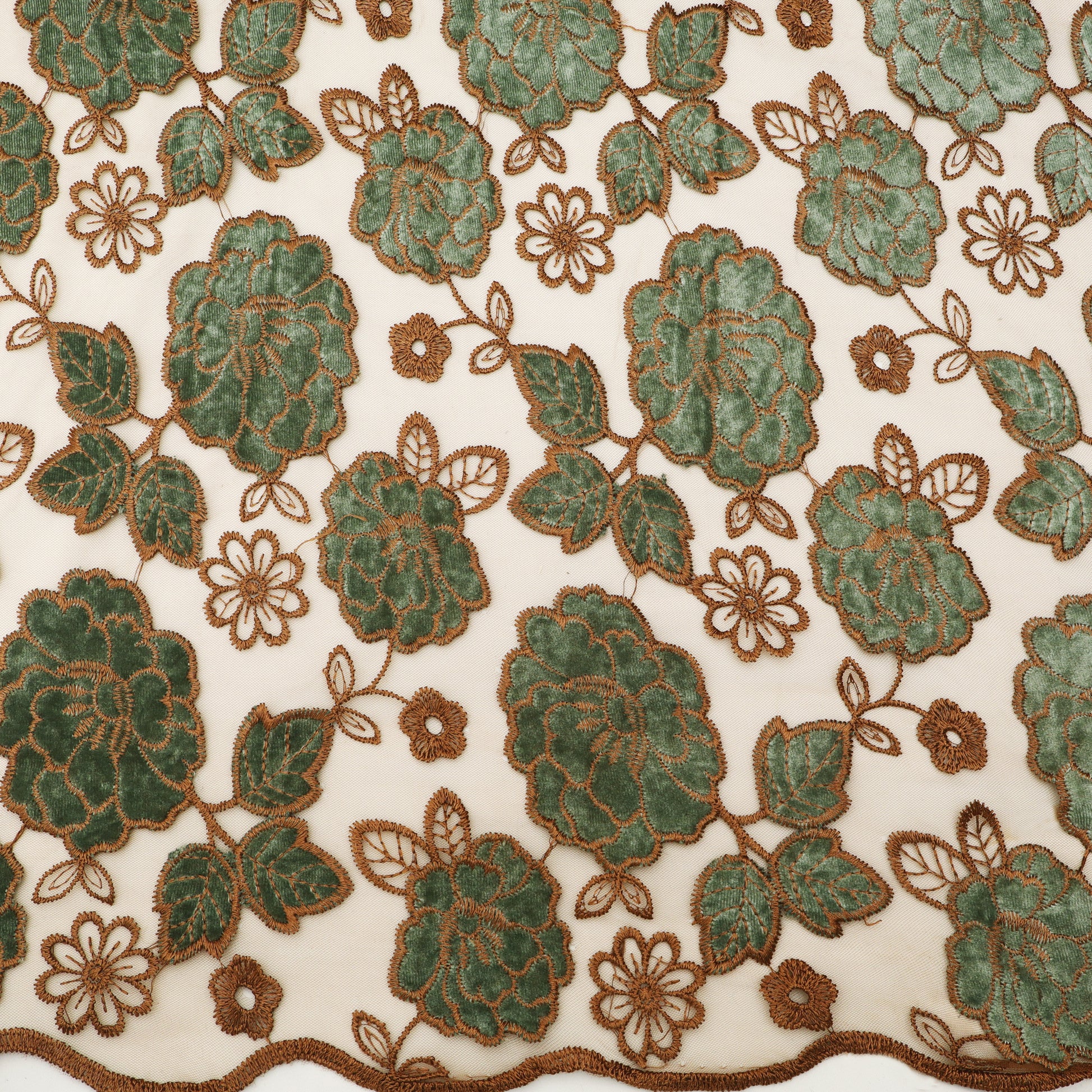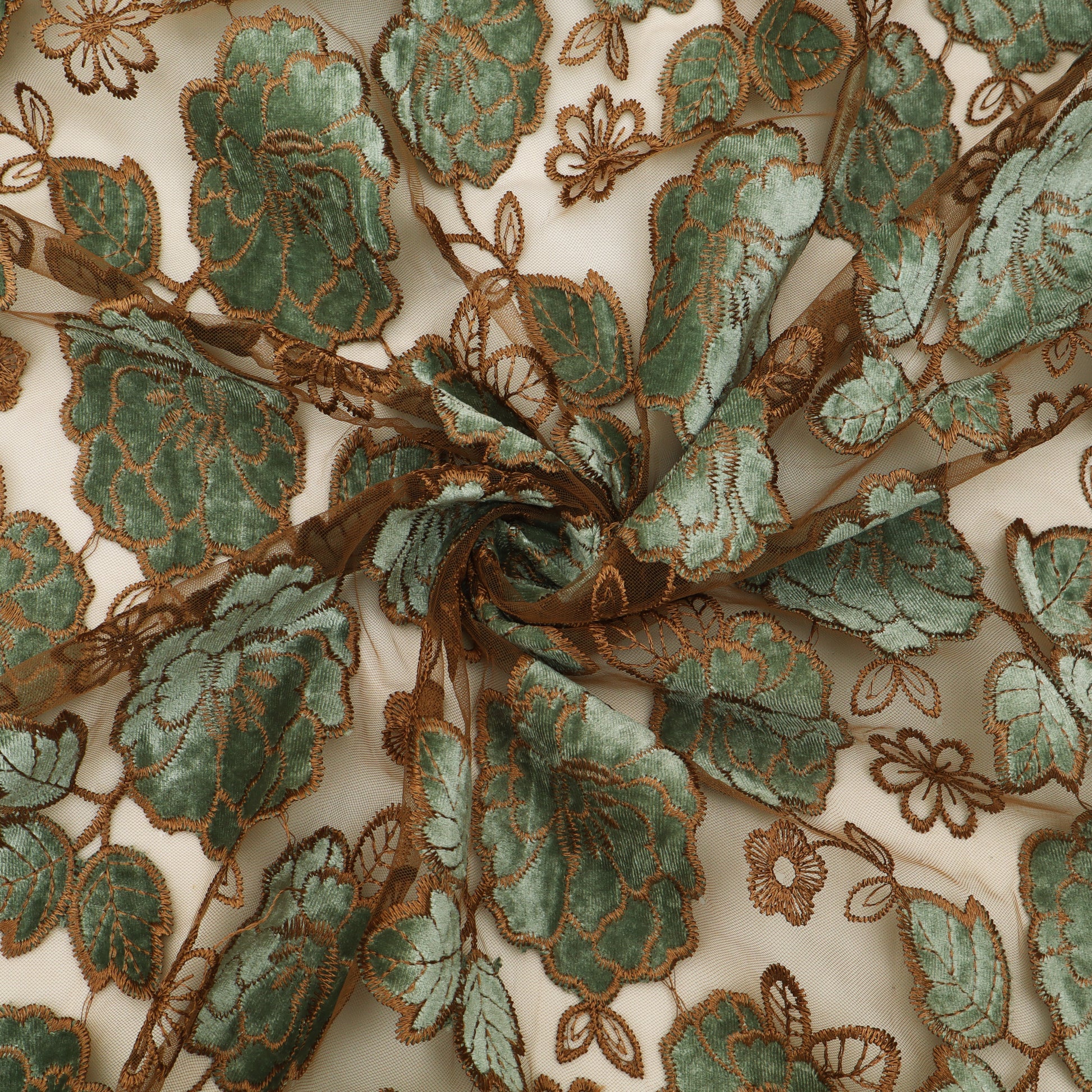 Elevate your ethnic creations with our Net Velvet Embroidery Fabric, crafted to bring together rich texture and refined elegance. The soft velvet base paired with intricate embroidery on delicate net adds depth, shine, and a luxurious finish to every design. Perfect for festive wear, bridal outfits, and statement ensembles, this fabric drapes beautifully and enhances the overall silhouette. Ideal for lehengas, anarkalis, gowns, blouses, and dupattas, it is designed to make every outfit look opulent and timeless.