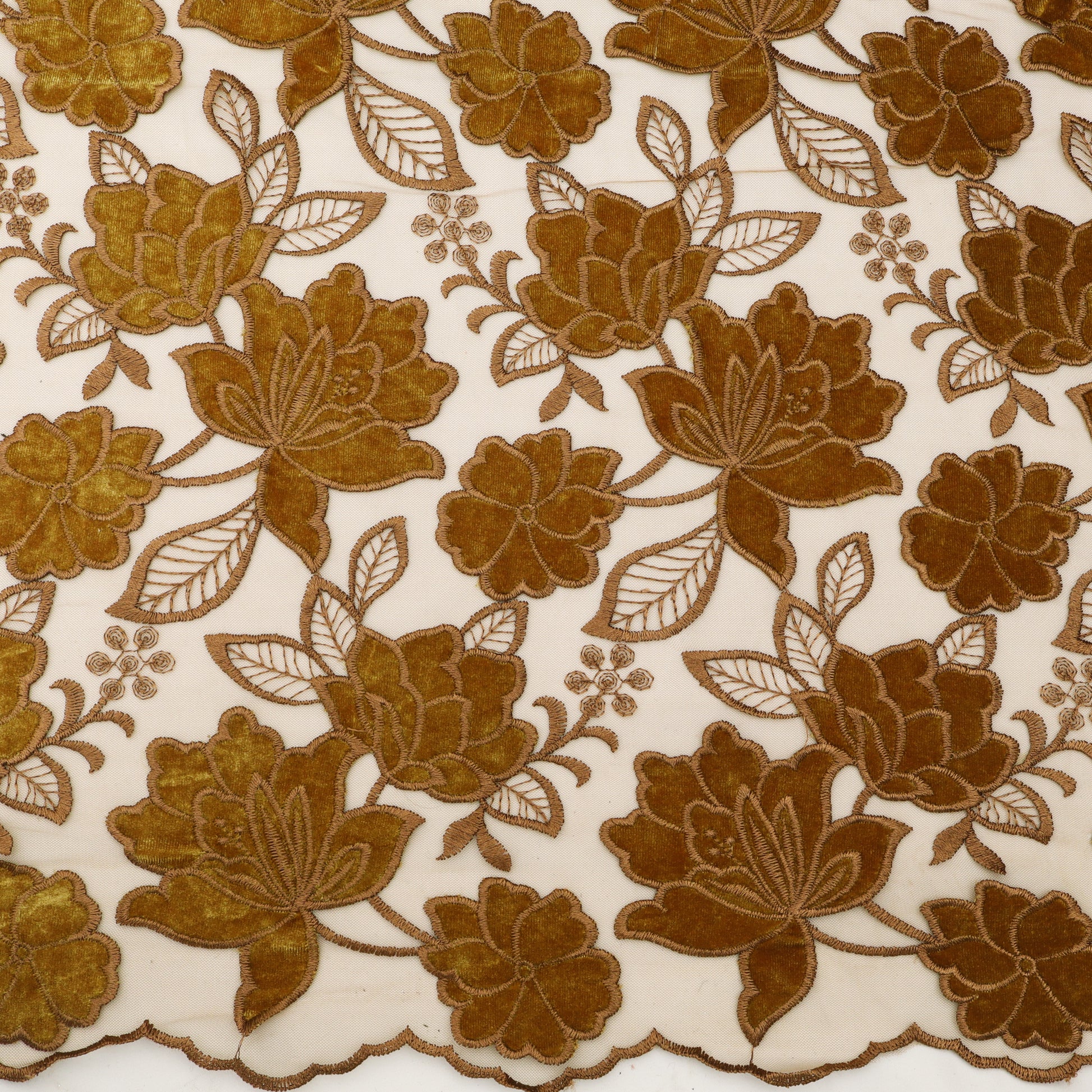 Add a touch of timeless elegance to your creations with our Net Velvet Embroidery Fabric. Crafted on a fine, sheer net base, this fabric is beautifully adorned with rich velvet floral embroidery, creating a luxurious textured finish. The intricate motifs and soft velvet detailing lend depth and sophistication, making it an ideal choice for statement ethnic and occasion wear.