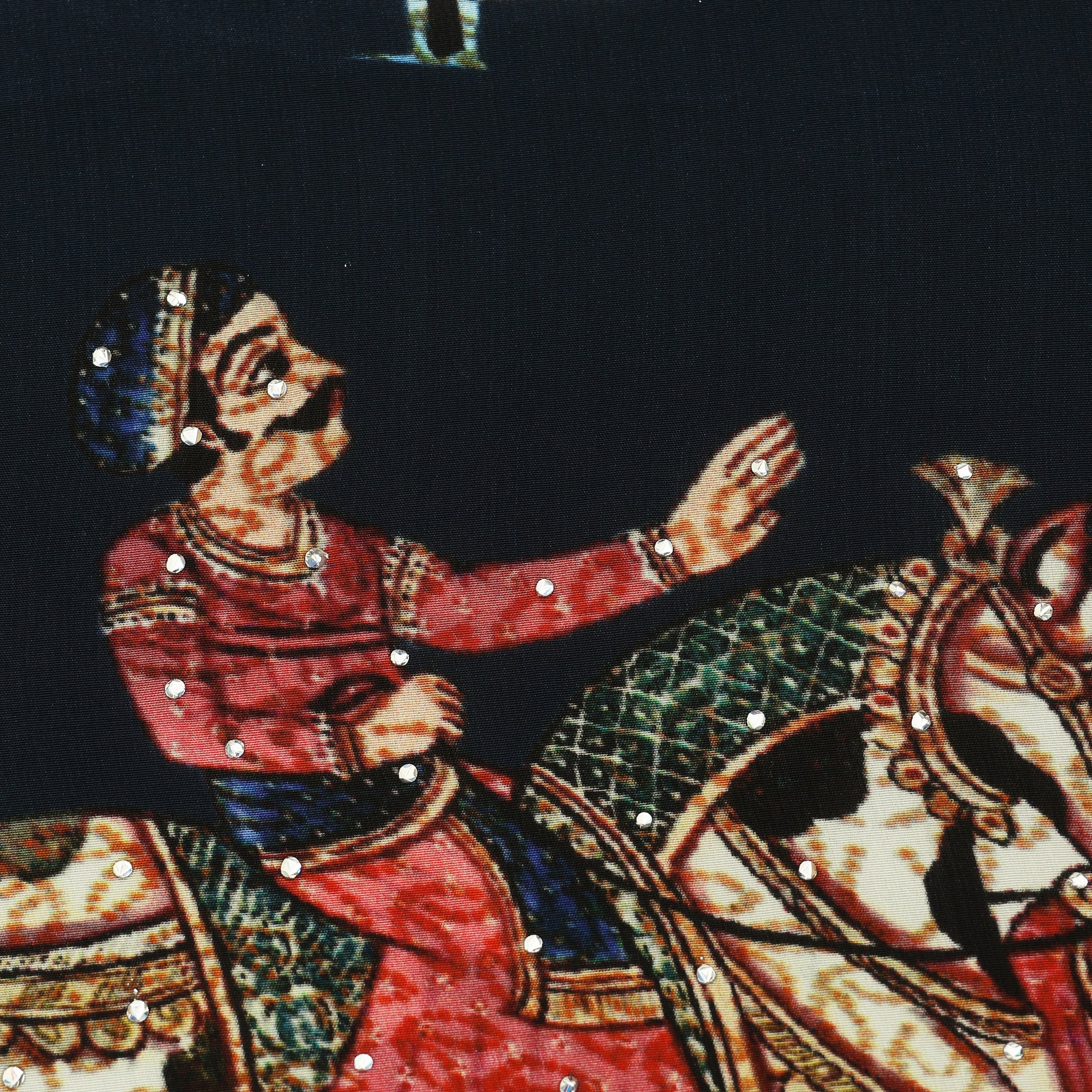 Navy Blue Crepe Hydra Print Mukaish Fabric