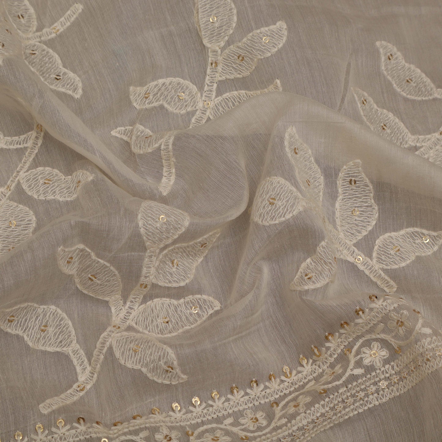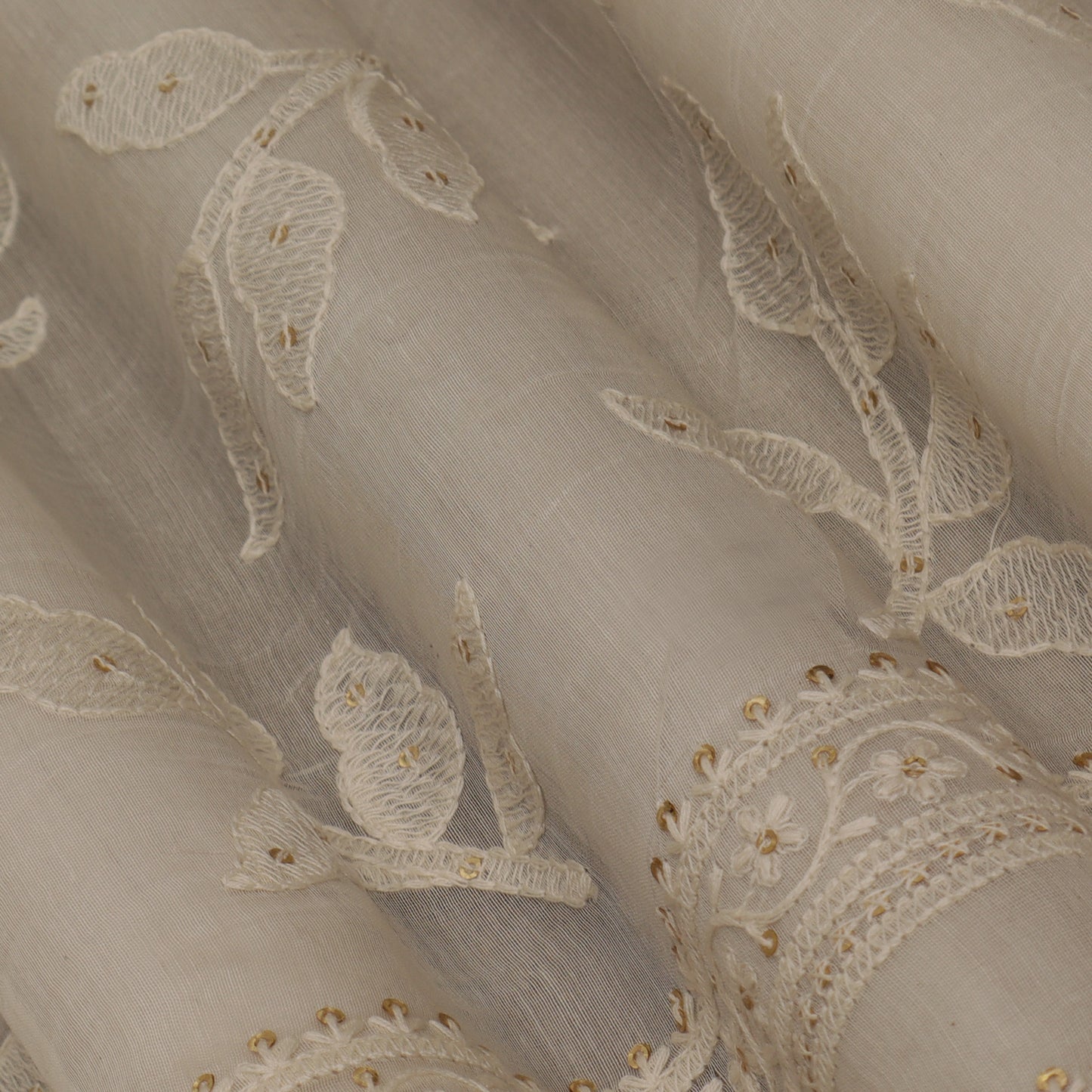 Experience luxury and elegance with our Off White Chanderi Embroidery Fabric. Crafted from premium quality materials, this fabric exudes sophistication and intricate detailing. The perfect choice for creating stunning dresses and sarees. Elevate your fashion game with this versatile and timeless fabric.