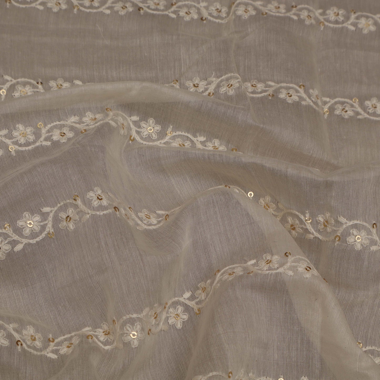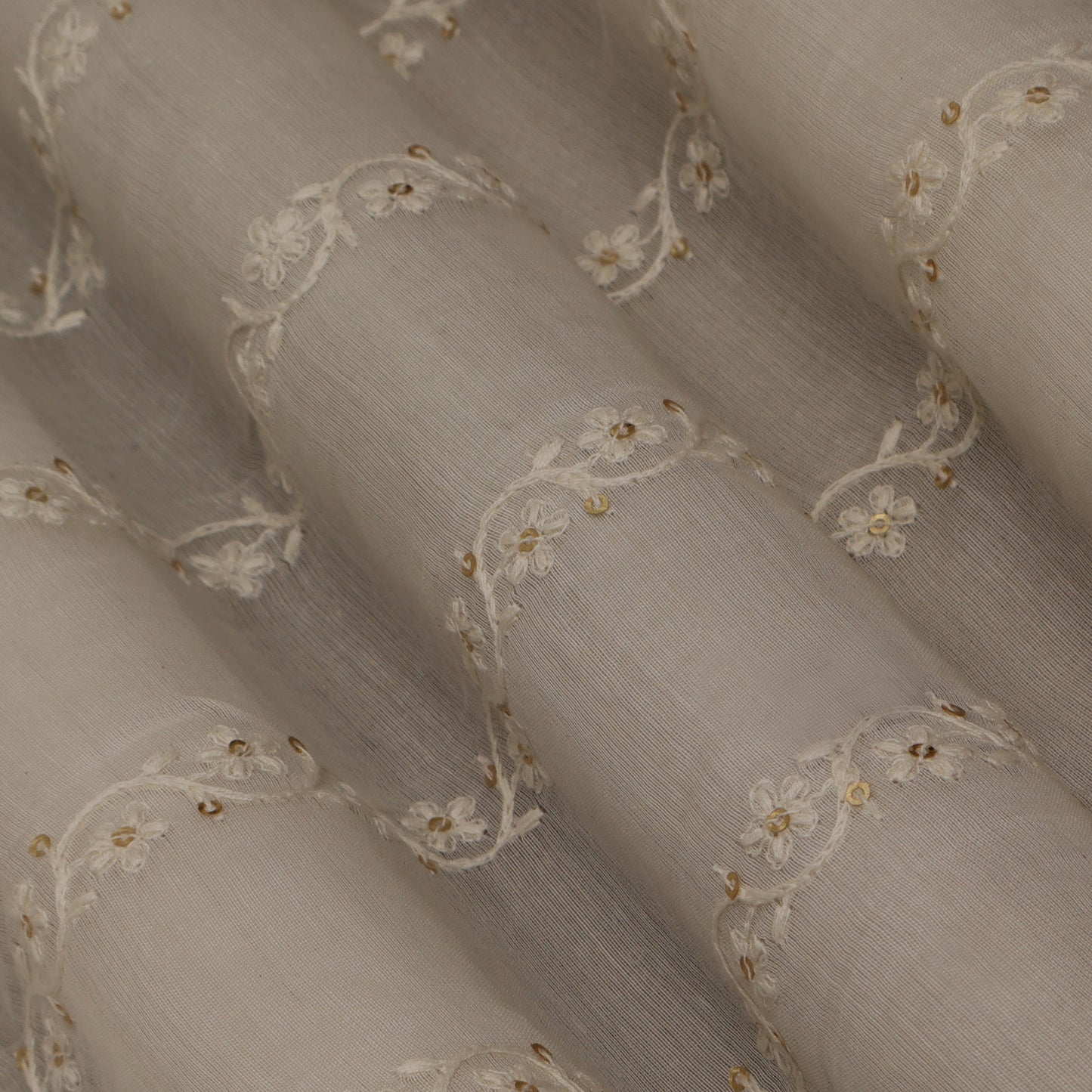 Off White Chanderi Embroidery Fabric