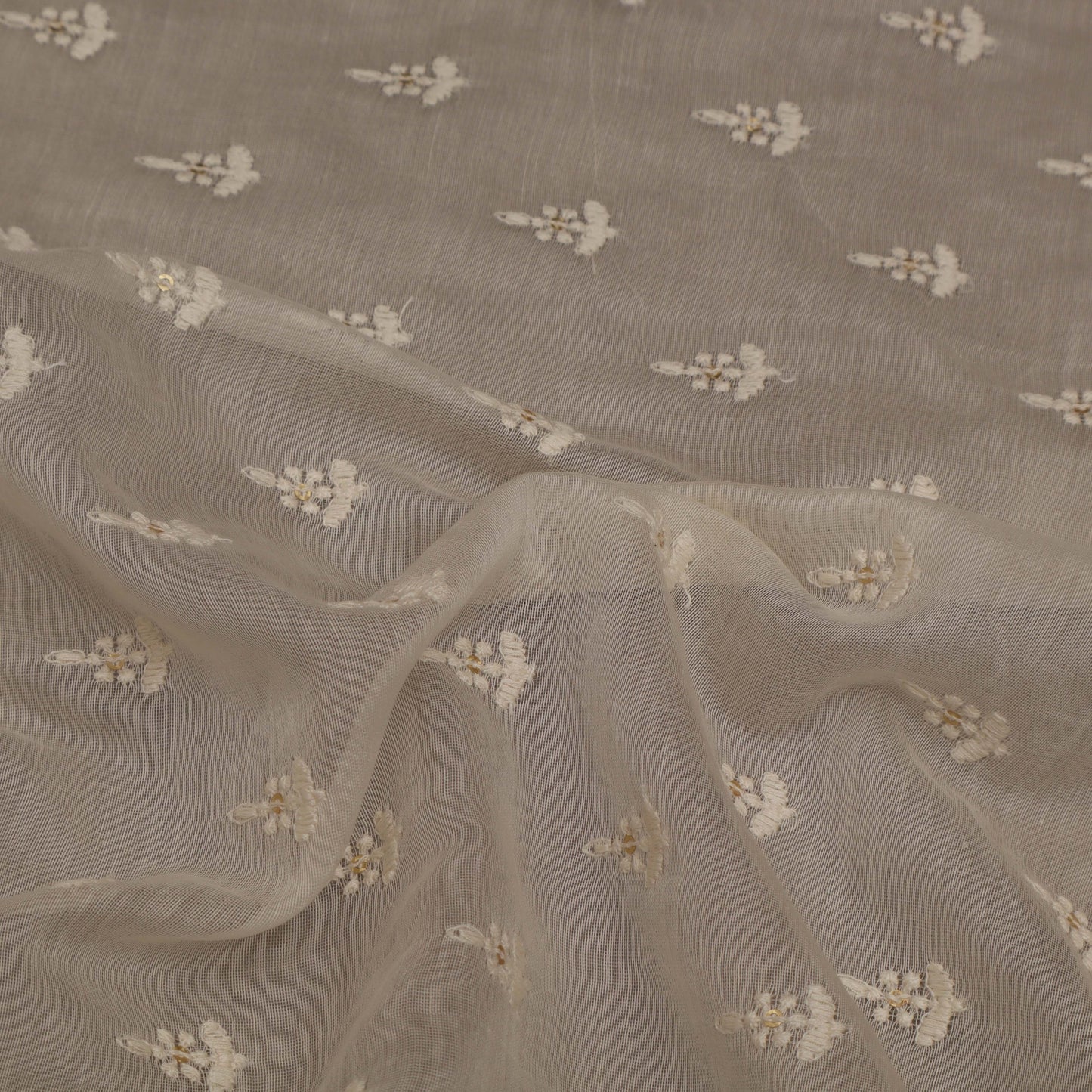 Expertly crafted from luxe Chanderi fabric, our Off White Embroidery Fabric adds a touch of elegance to any outfit. The intricate embroidery enhances the fabric and adds a dynamic texture. Made with high-quality materials, this fabric is durable and versatile, perfect for creating stunning garments.
