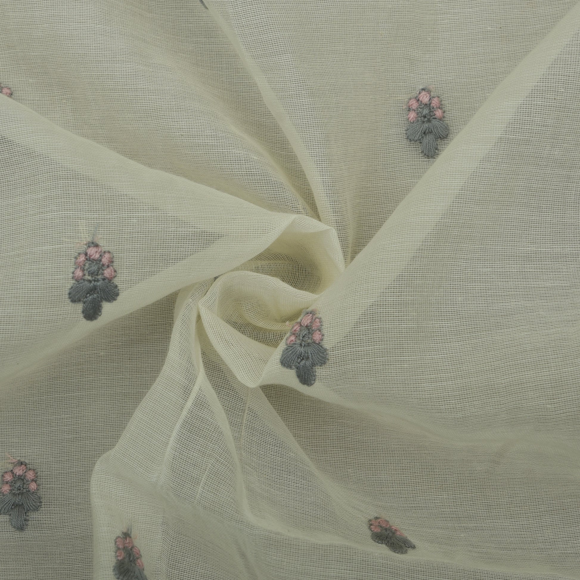 Off White Color Chanderi Booti Embroidery Fabric