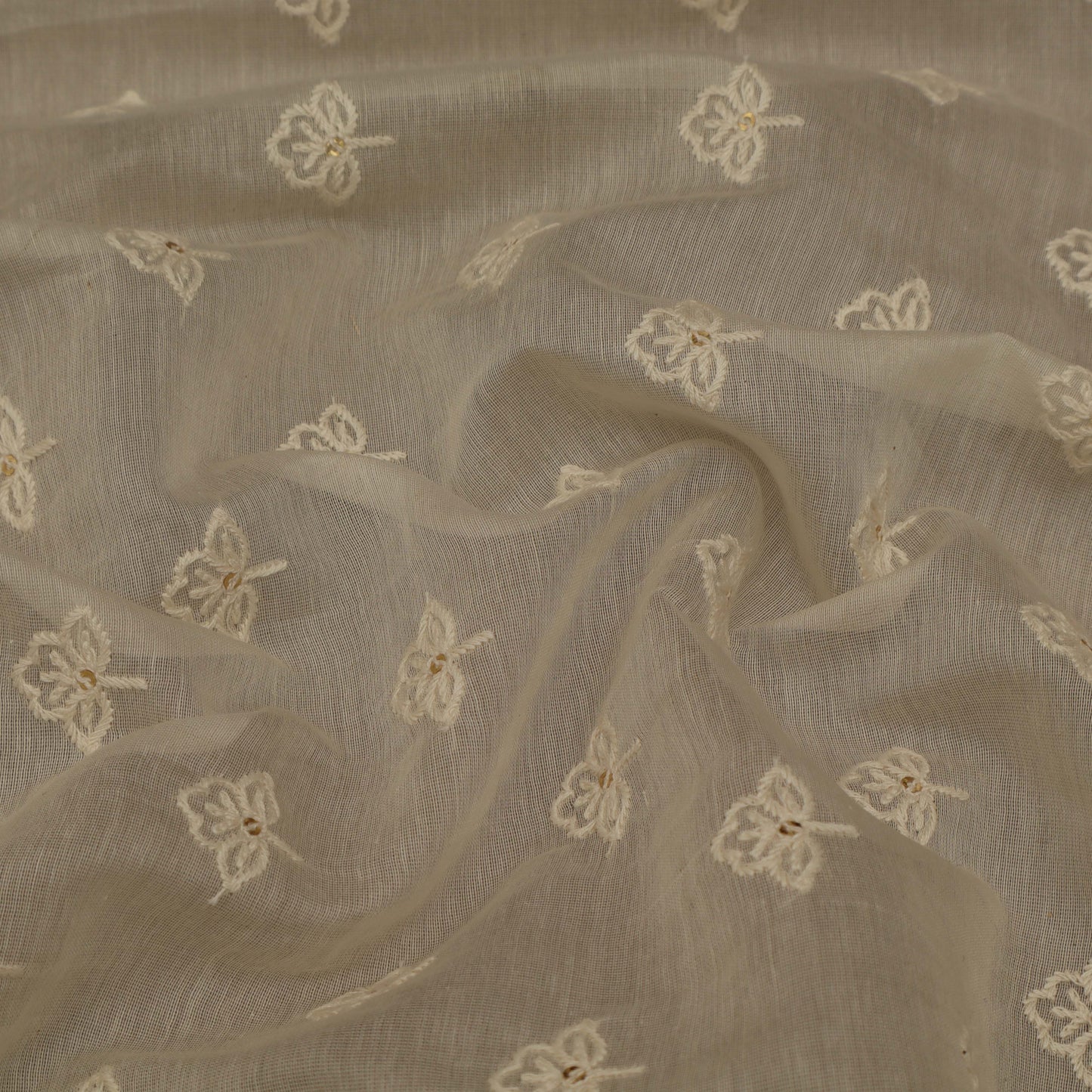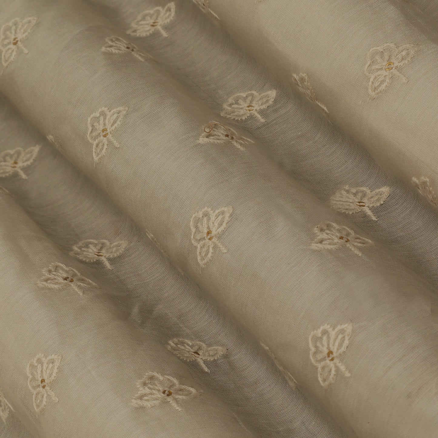 This off-white chanderi embroidery fabric is perfect for creating elegant and sophisticated garments. Made with high-quality materials, the fabric features intricate embroidery that adds a touch of luxury to any outfit. Its light and airy texture make it ideal for warm weather, while its off-white color can be easily accessorized.