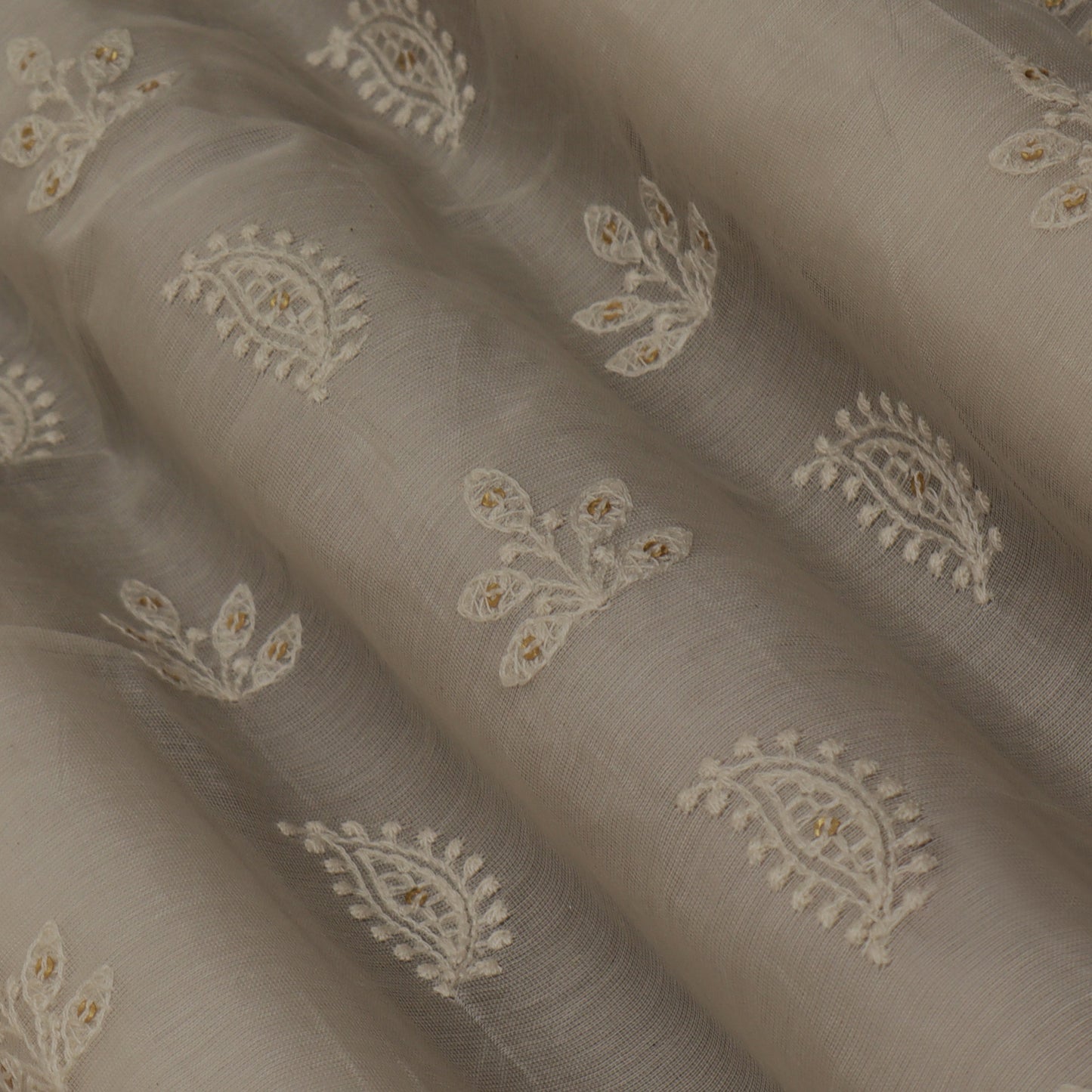 This Off White Color Chanderi Embroidery Fabric is a luxurious and delicate addition to any garment. Made with precision and expertise, it boasts of intricate embroidery details that add elegance to any outfit. Crafted from high-quality materials, it offers a soft and comfortable feel, ensuring both style and comfort in one.