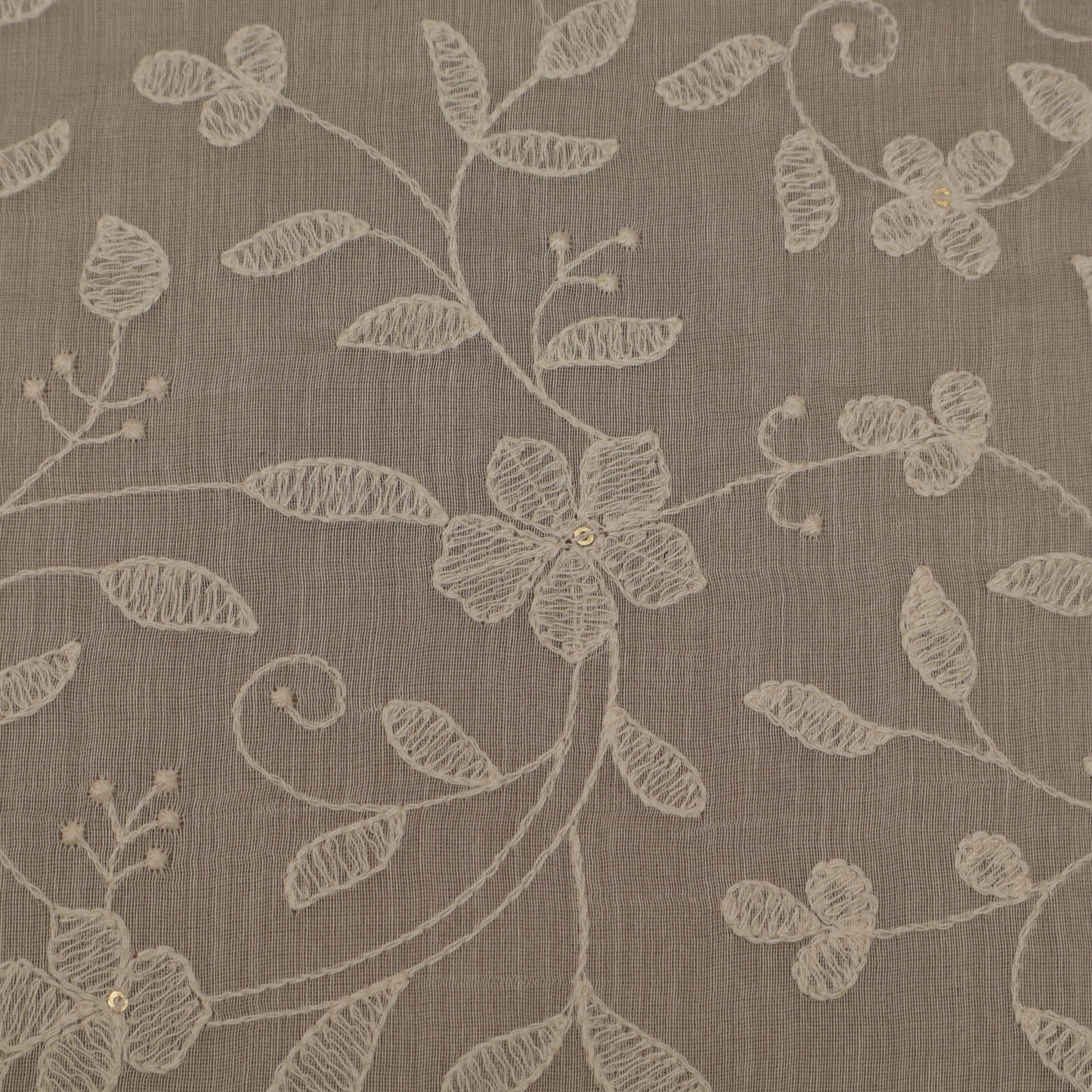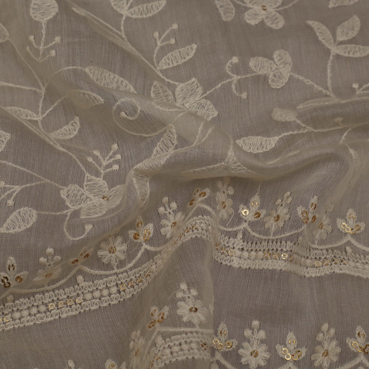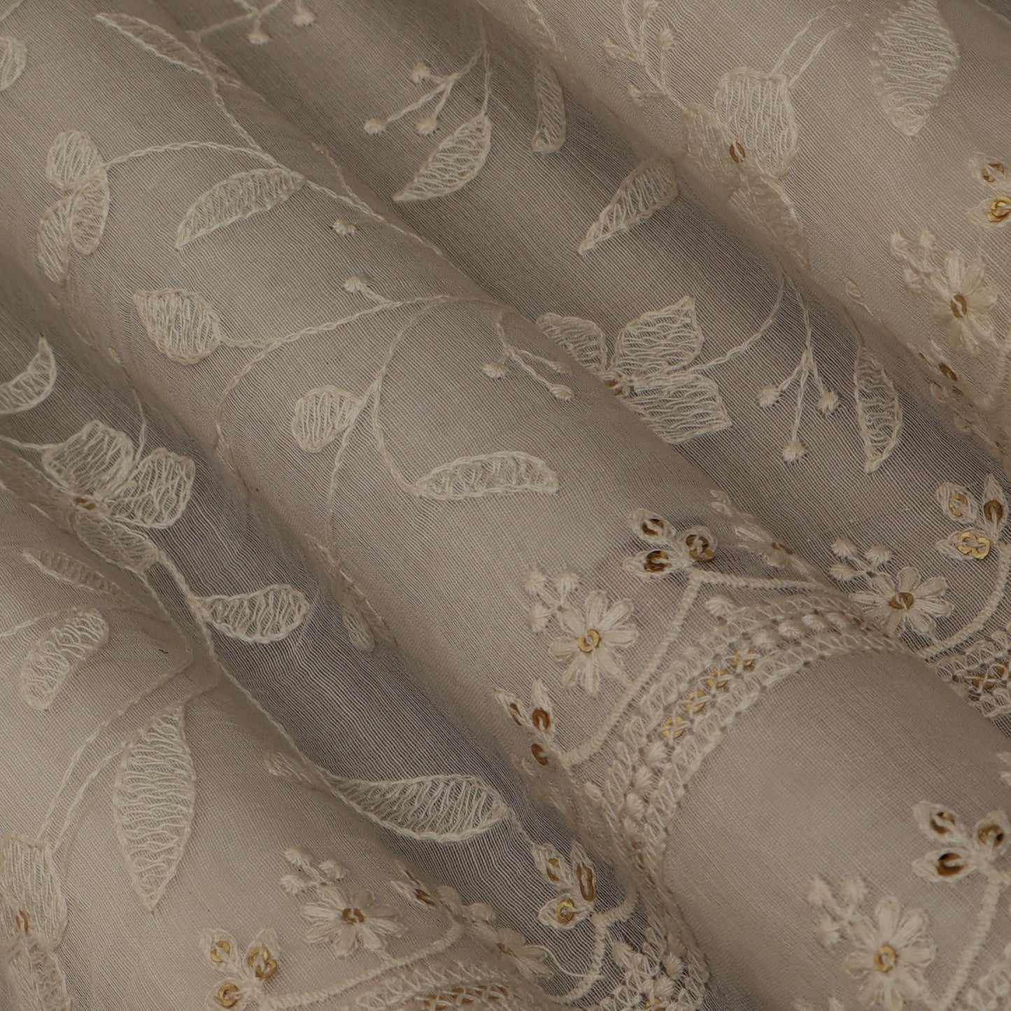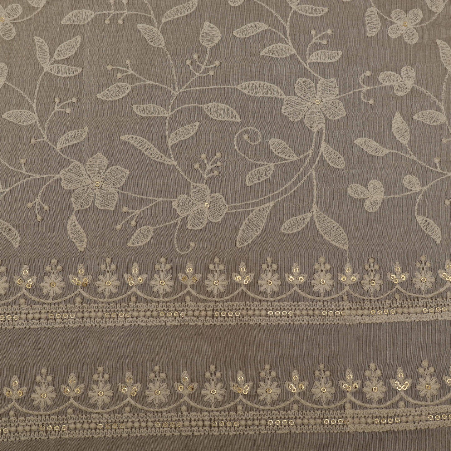 Experience the elegance and luxury of our Off White Color Chanderi Embroidery Fabric. Made from high-quality materials with beautiful embroidery, this fabric will add a touch of sophistication to any garment or home decor project. Its neutral color is perfect for versatile use, while the embroidery adds a unique touch of design.