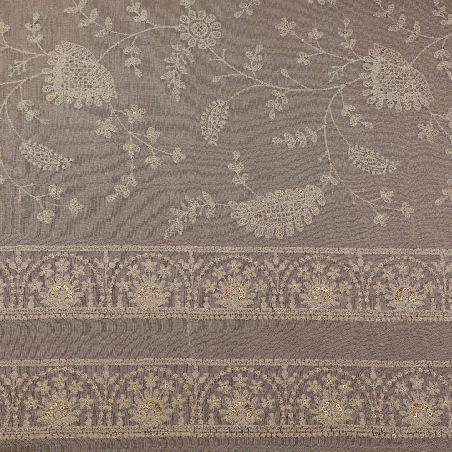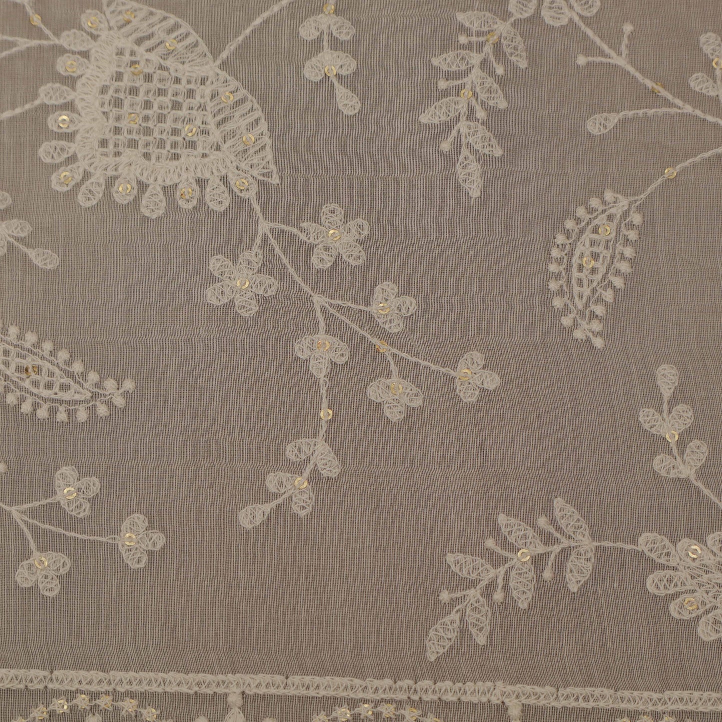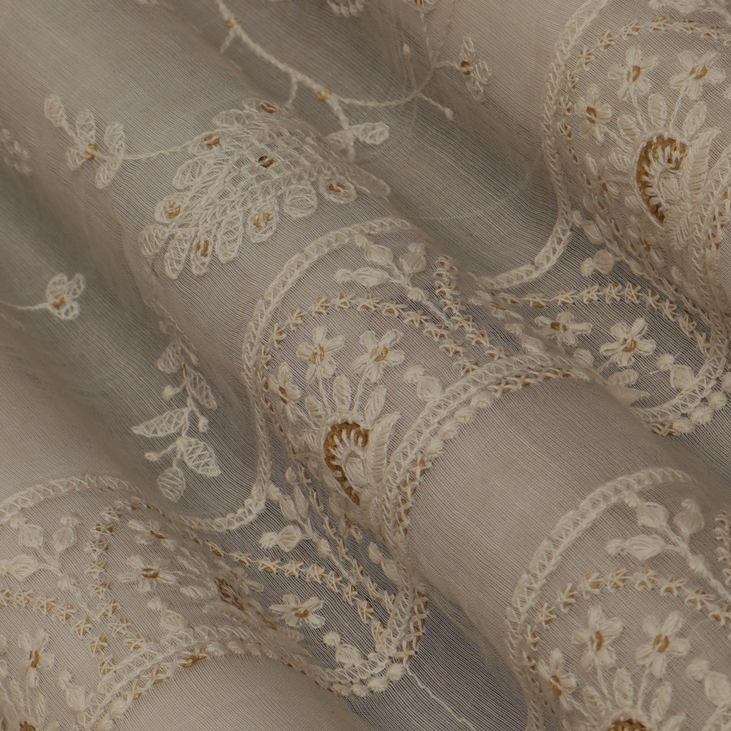 Off White Color Chanderi Embroidery Fabric