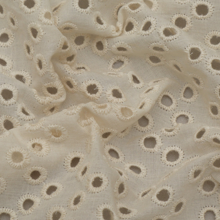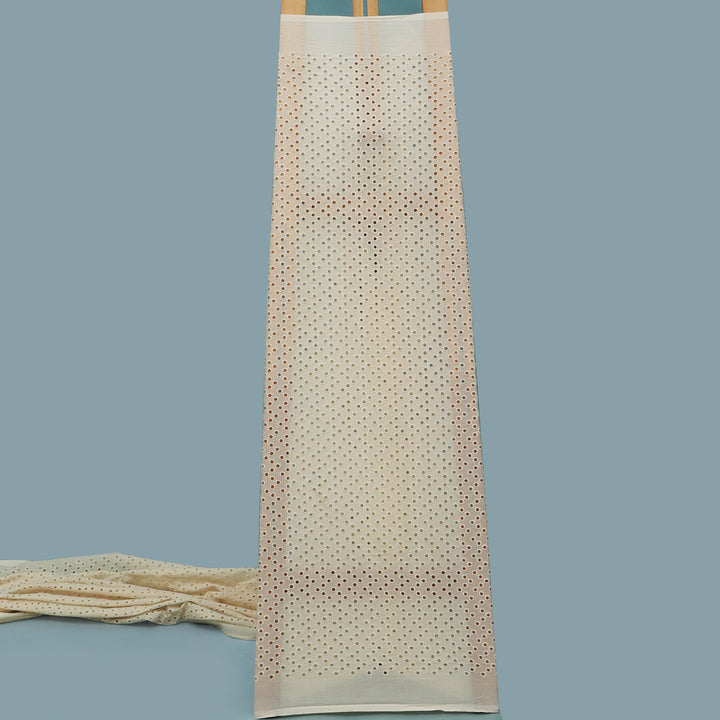 Experience the luxury of our Off White Color Cotton Chikan Fabric. Made from high-quality cotton, this fabric boasts a timeless beauty that will elevate your fashion projects. Its unique chikan texture adds a touch of elegance to any design. Enhance your style with this exquisite fabric.