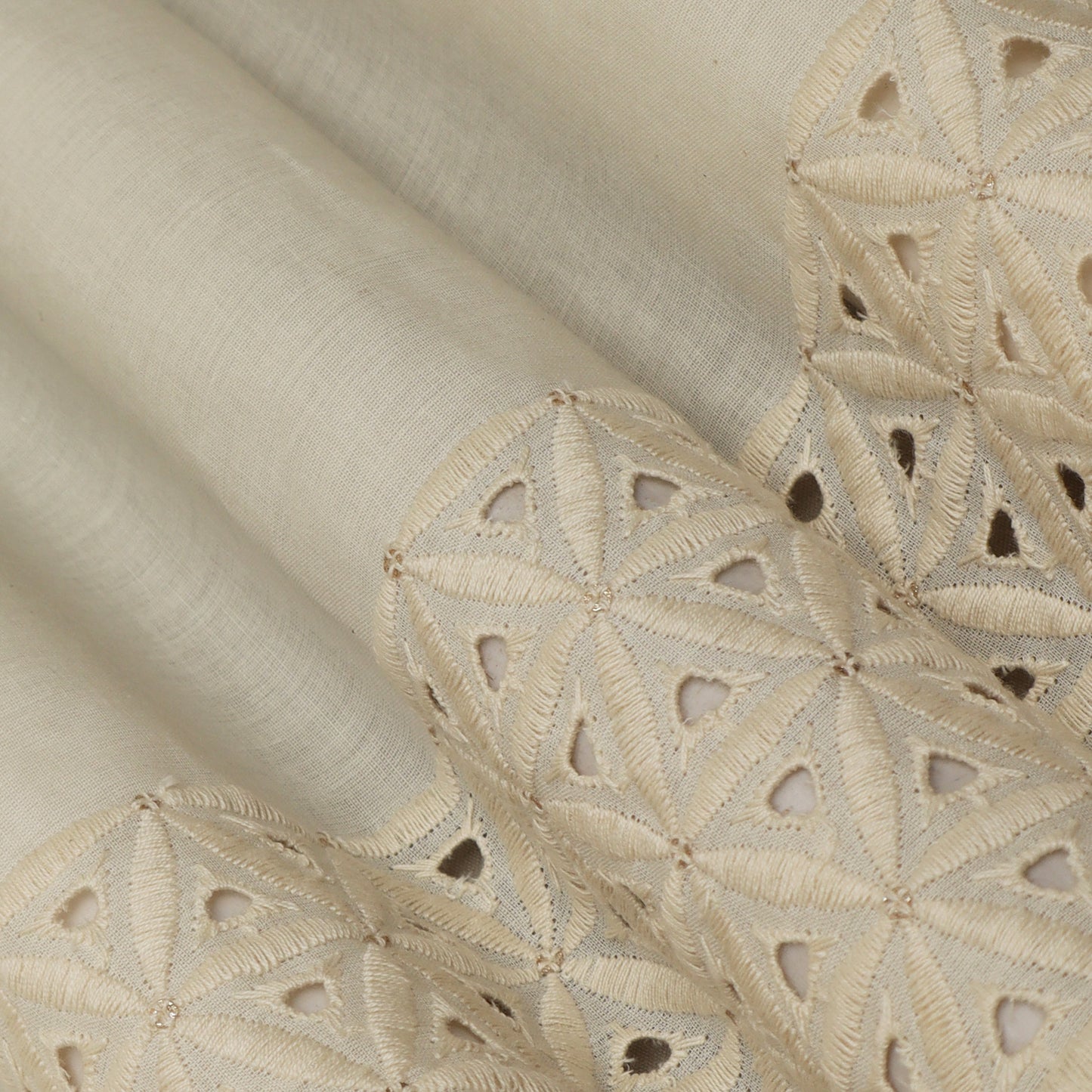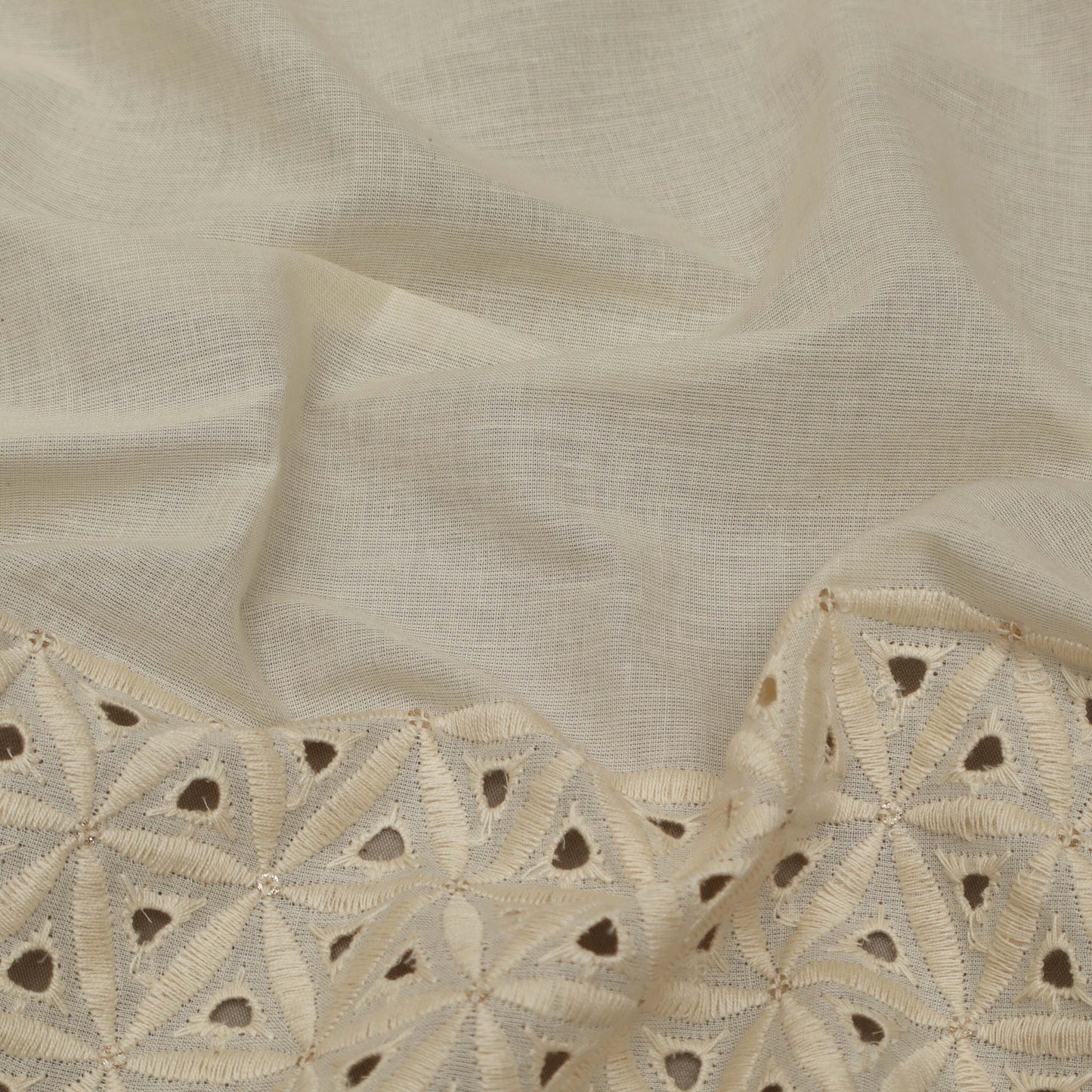 This off-white cotton fabric is delicately embroidered with chikan work, creating a beautiful and elegant look. The soft and lightweight material offers comfort and breathability, perfect for warm weather. The versatile color makes it easy to pair with any top, making it a versatile addition to your wardrobe.