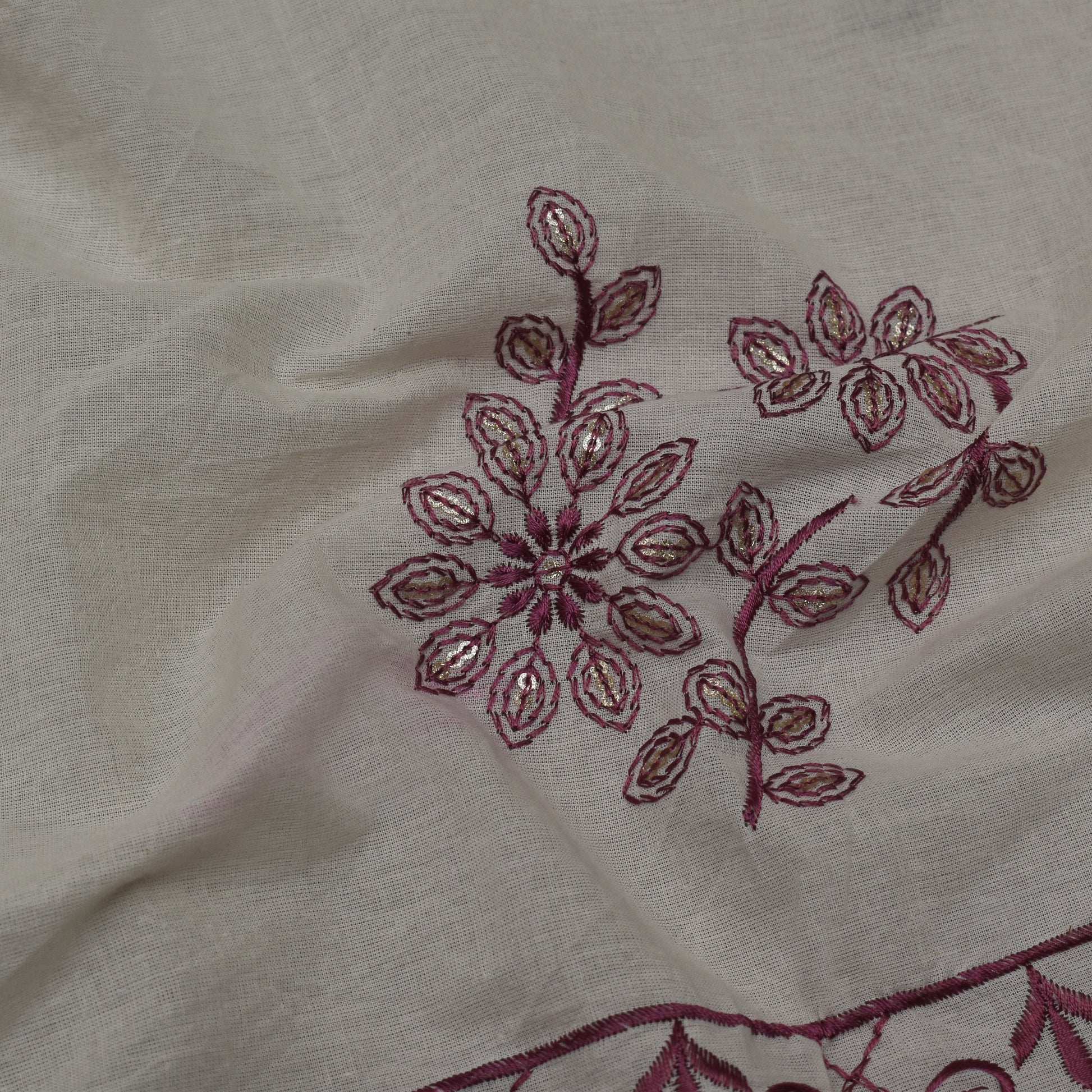 Off White Color Cotton Embroidery Fabric