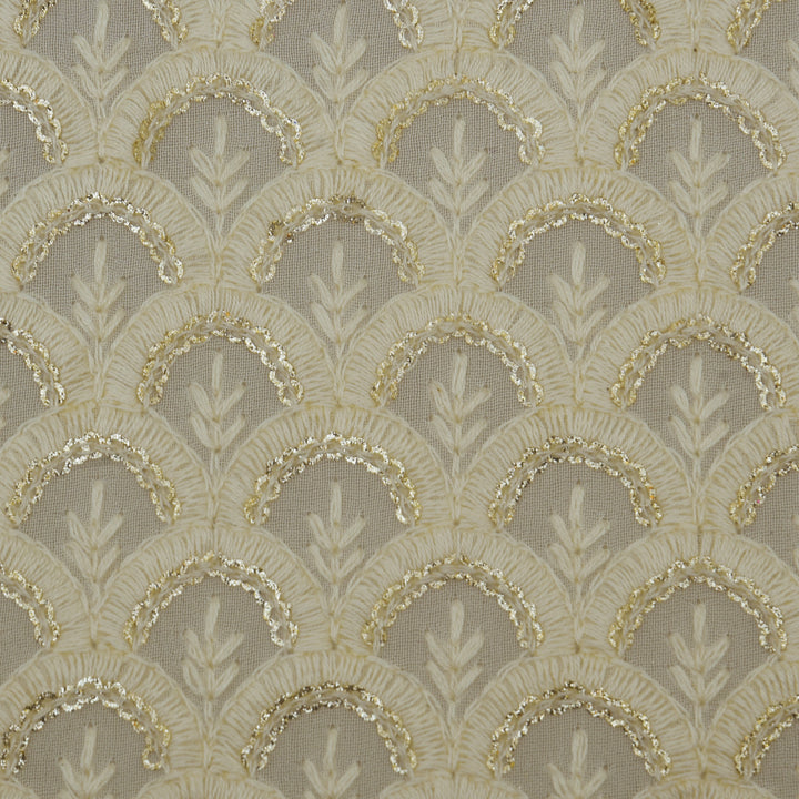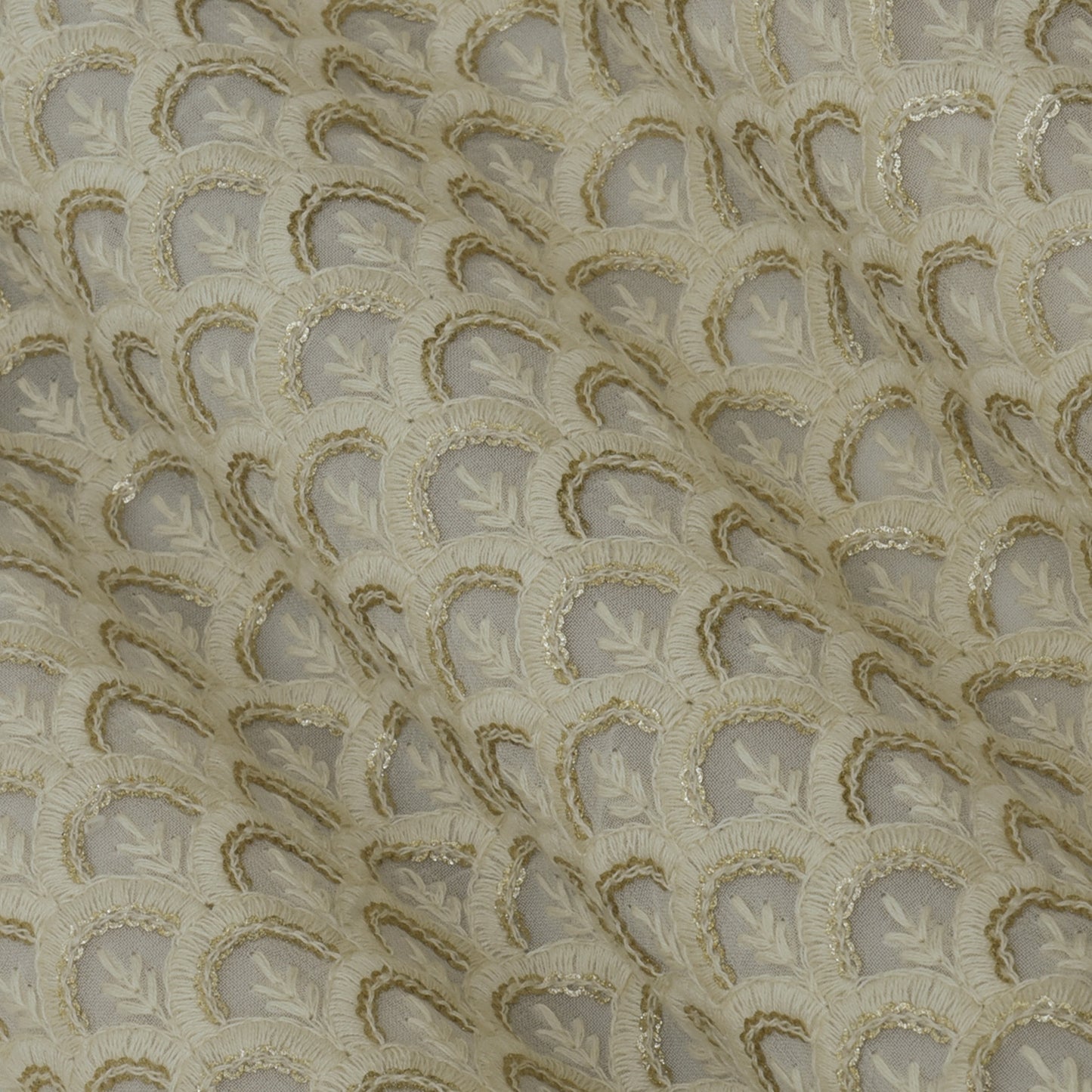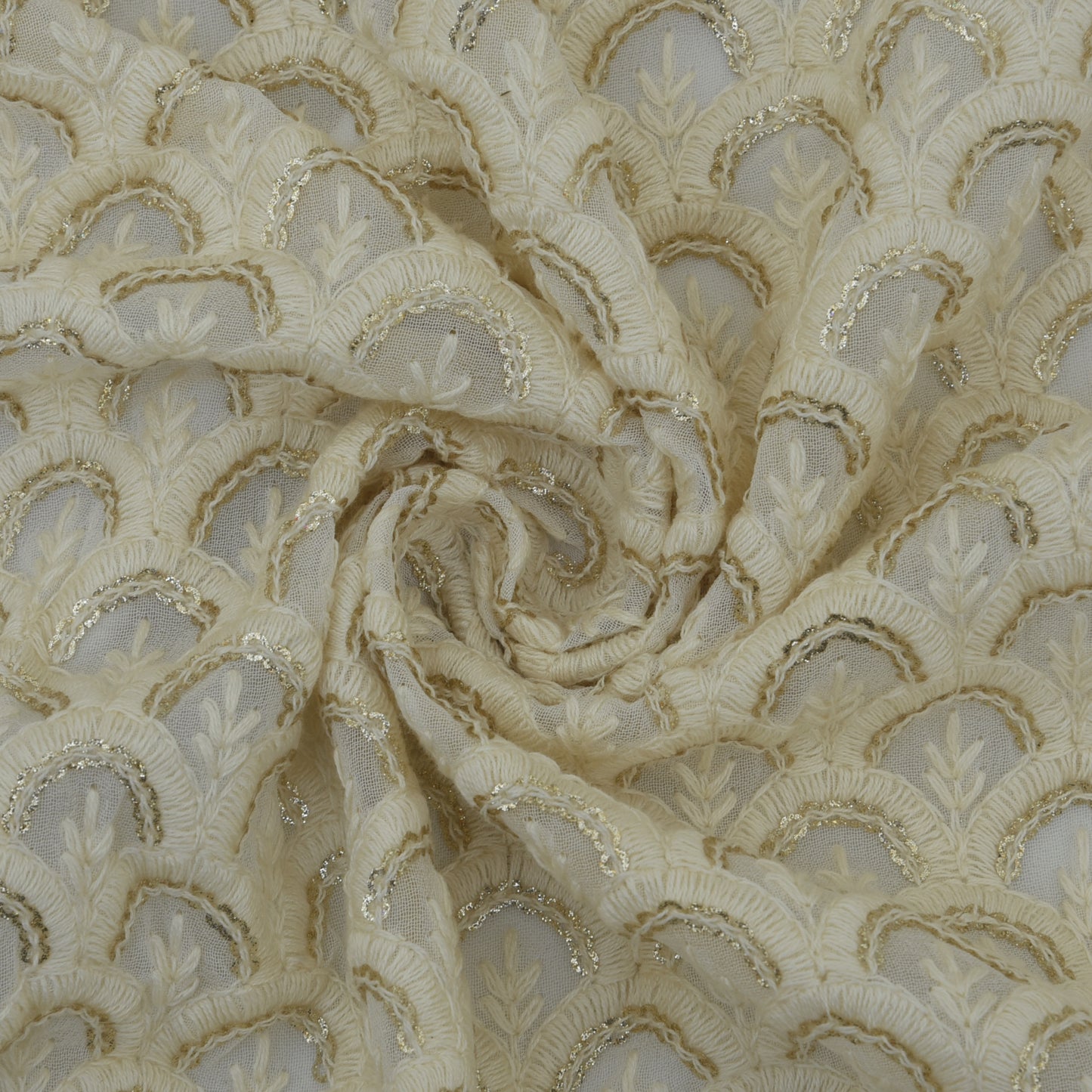 Expertly crafted with off white georgette fabric, this embroidery fabric adds elegance to any project. With its intricate details and high-quality material, this fabric is perfect for creating one-of-a-kind pieces. Achieve a professional look with ease and elevate your creations with this luxurious fabric.