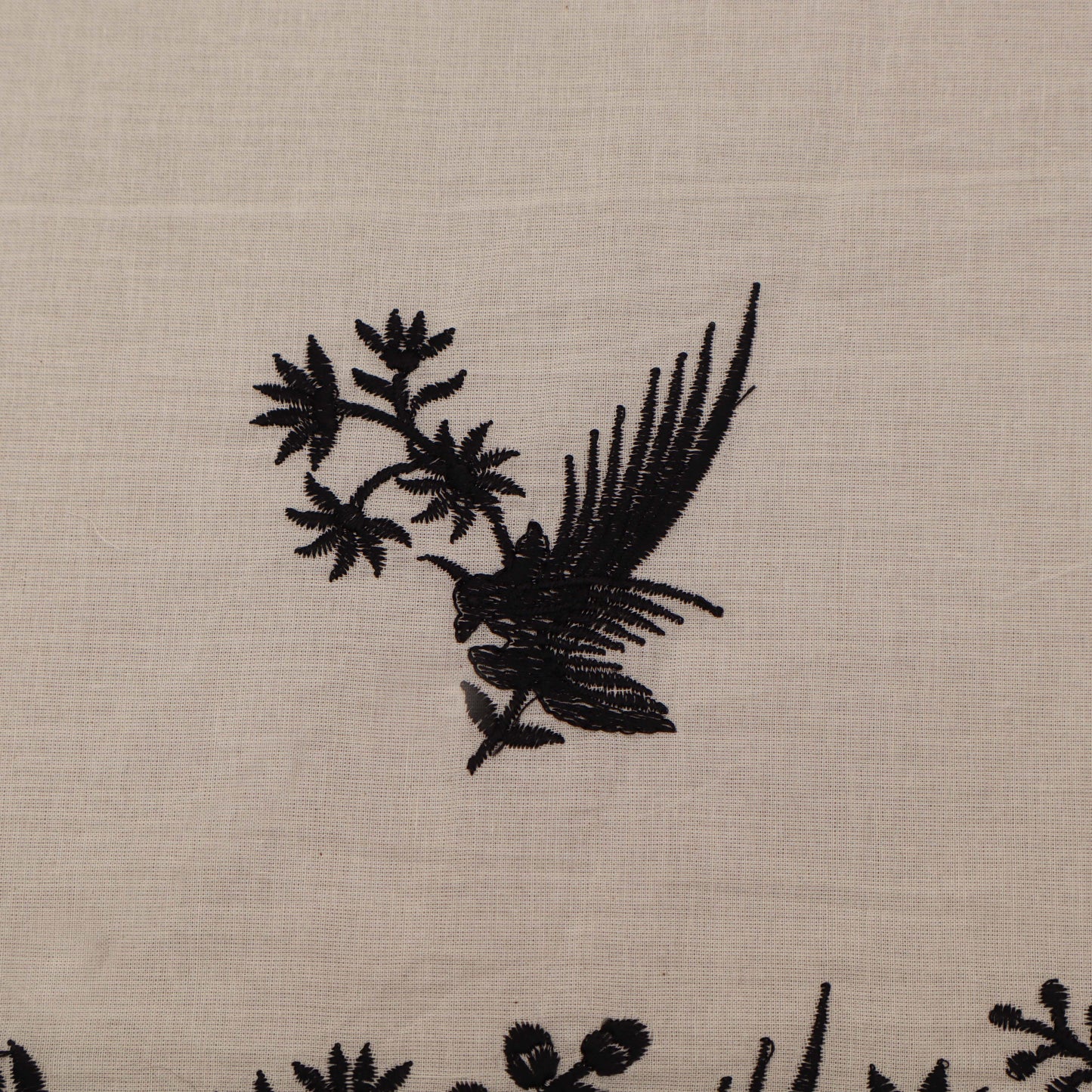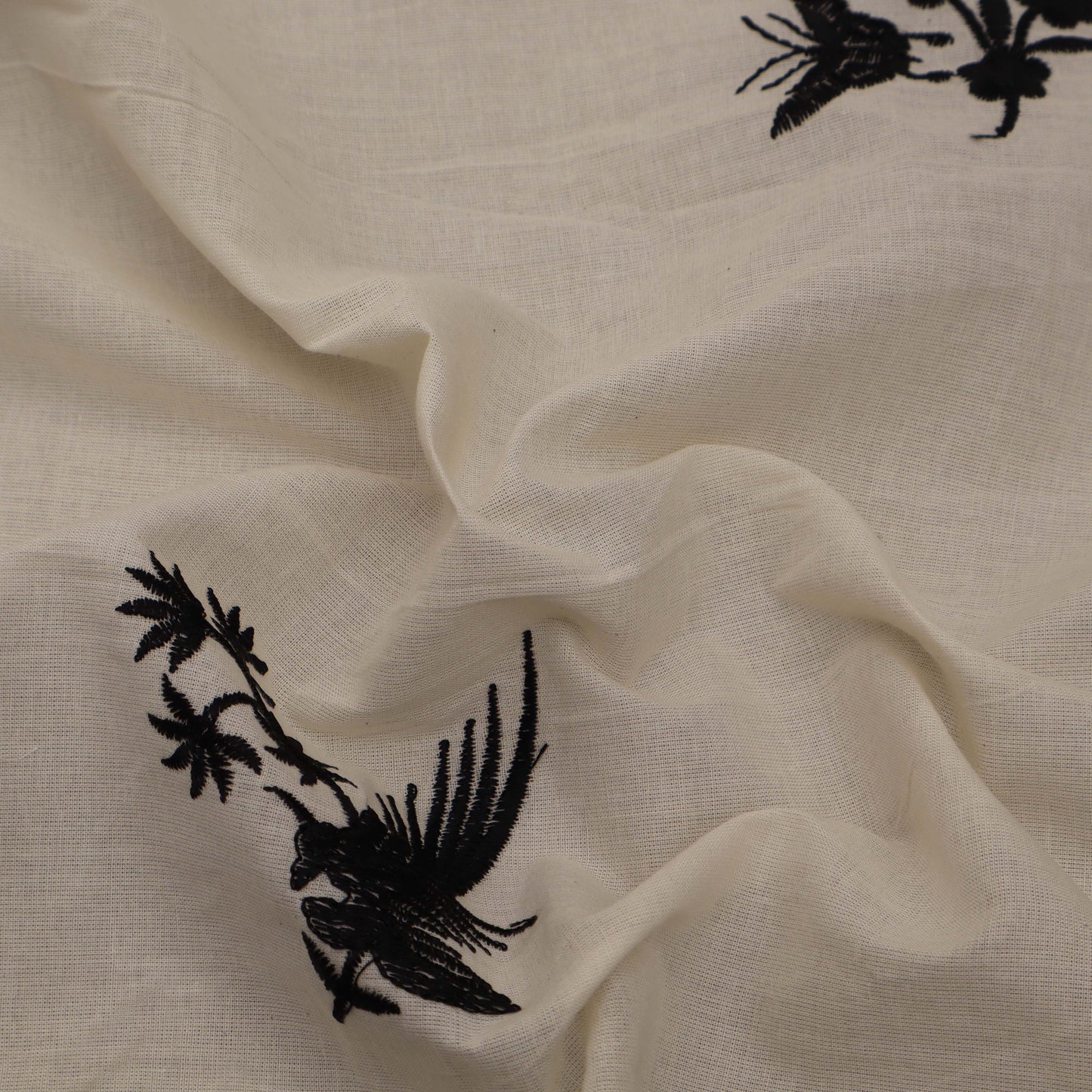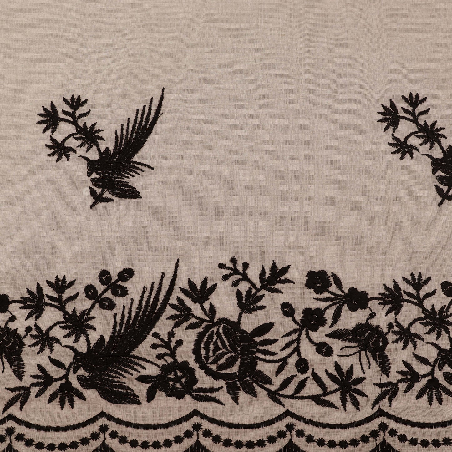 Off White Color Kora Border Embroidery Fabric