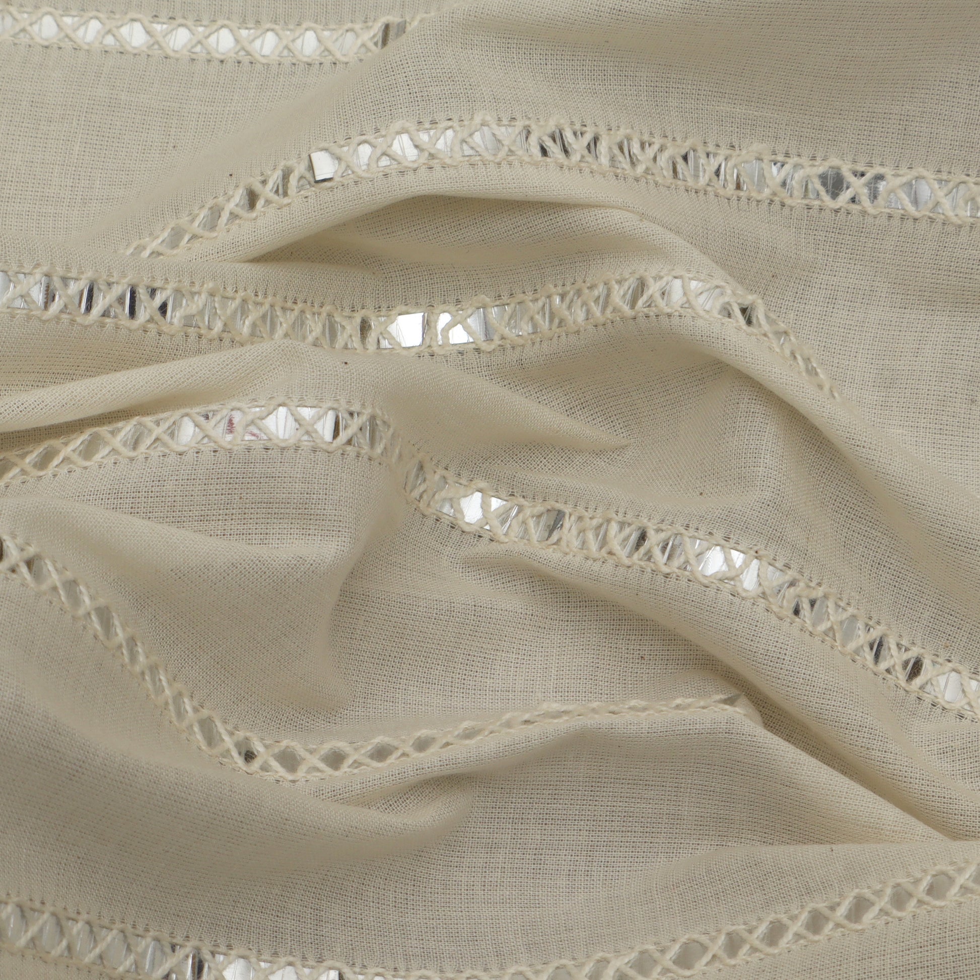 Expertly crafted with off white color and kora cotton, this embroidery fabric is a must-have for any sewing project. Its soft texture and intricate design make it perfect for creating stunning and elegant pieces. With this fabric, you can easily elevate any outfit or home decor item with a touch of sophistication and luxury.
