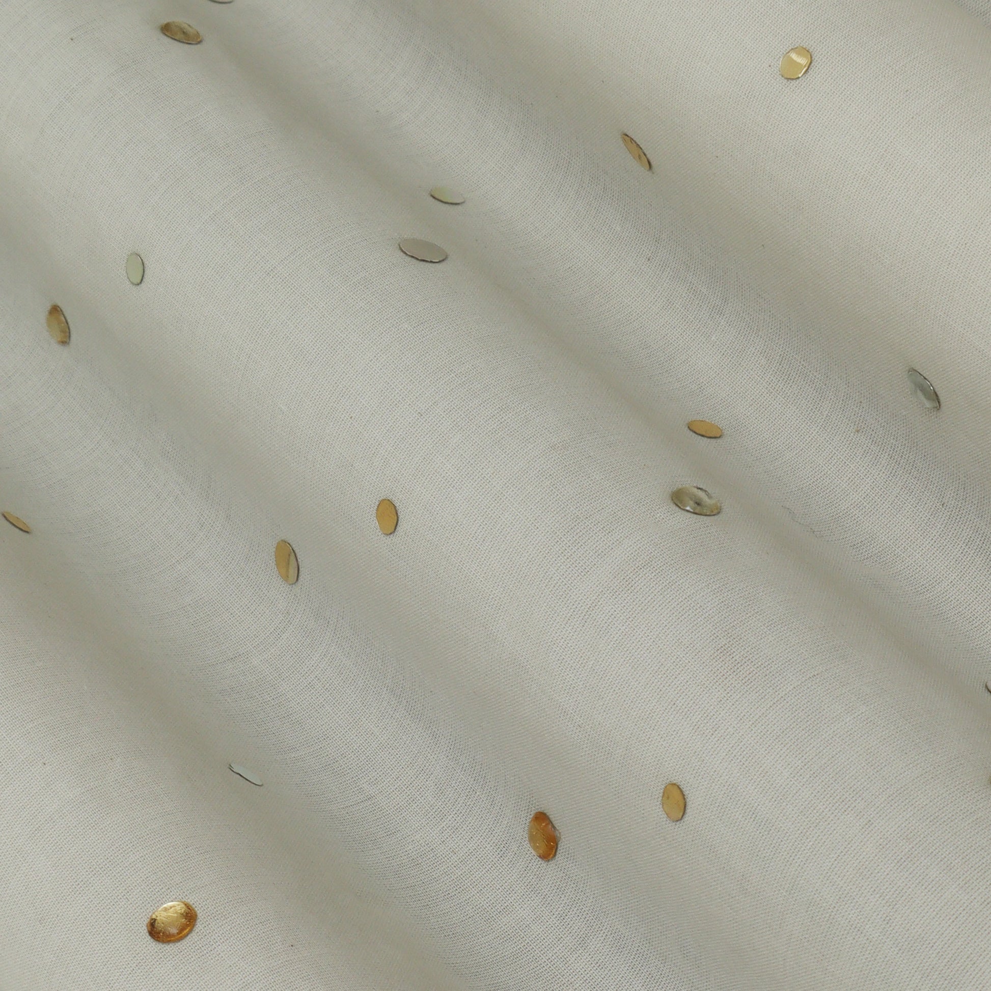 Experience pure elegance and sophistication with our Off White Color Kora Mukesh Fabric. This high-quality fabric boasts a subtle, yet luxurious sheen that is perfect for creating stunning formal attire. Made from premium materials, this fabric is lightweight, breathable, and drapes beautifully, providing both style and comfort.