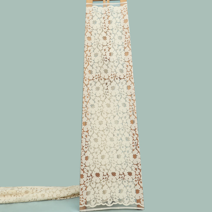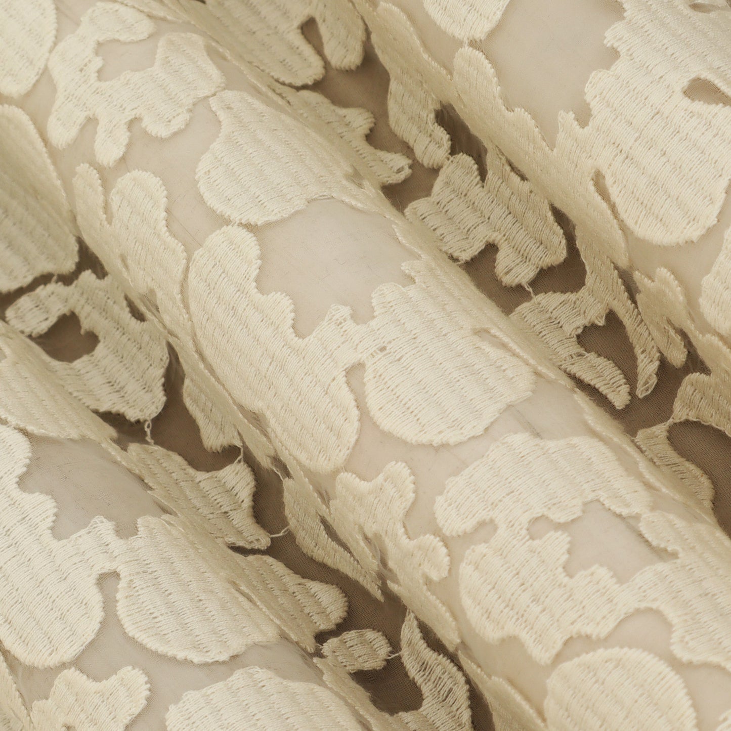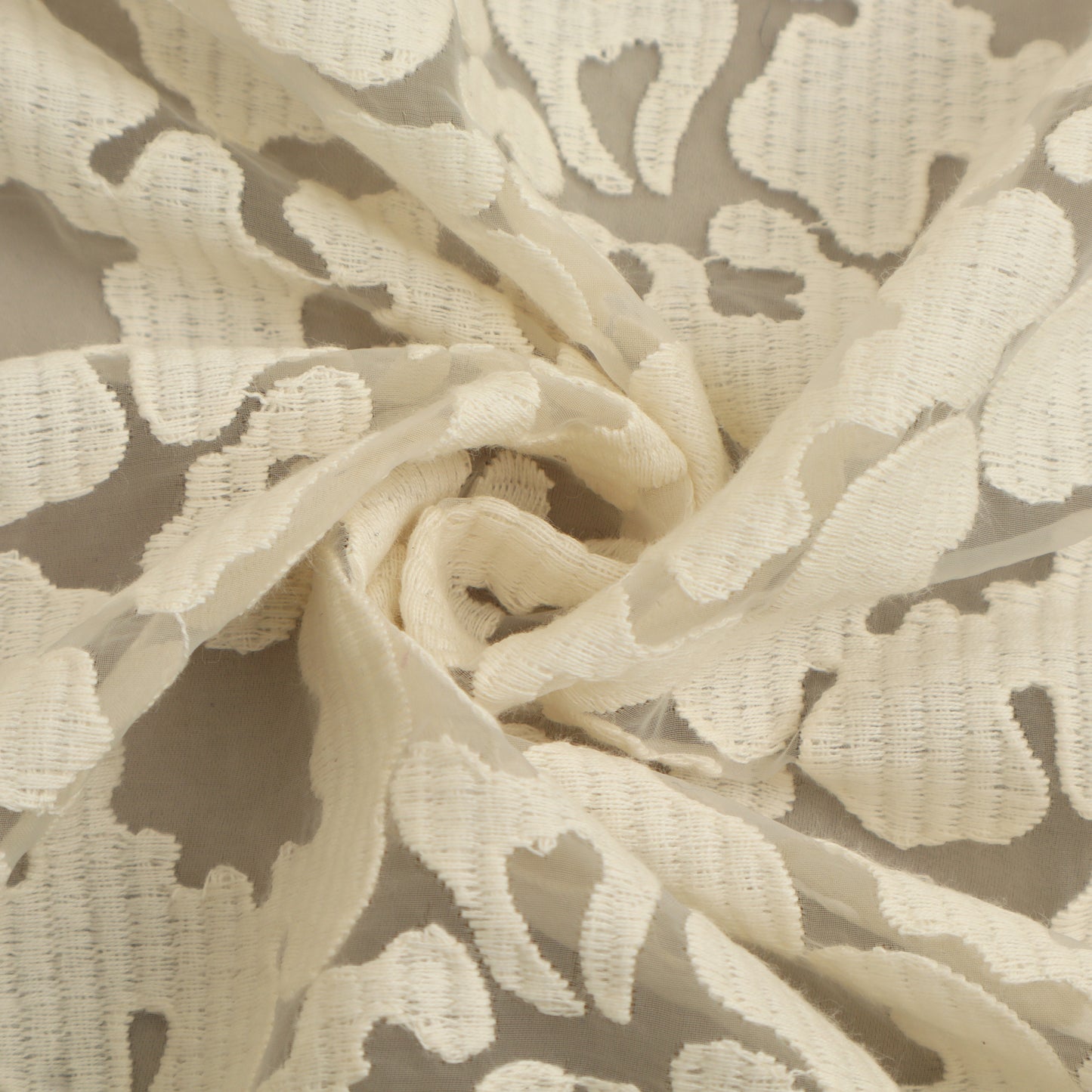 This off-white color organza embroidery fabric is a luxurious choice for any sewing project. The intricate embroidery adds a touch of elegance, while the lightweight organza material is perfect for creating flowy and elegant pieces. Elevate your designs with this high-quality fabric.