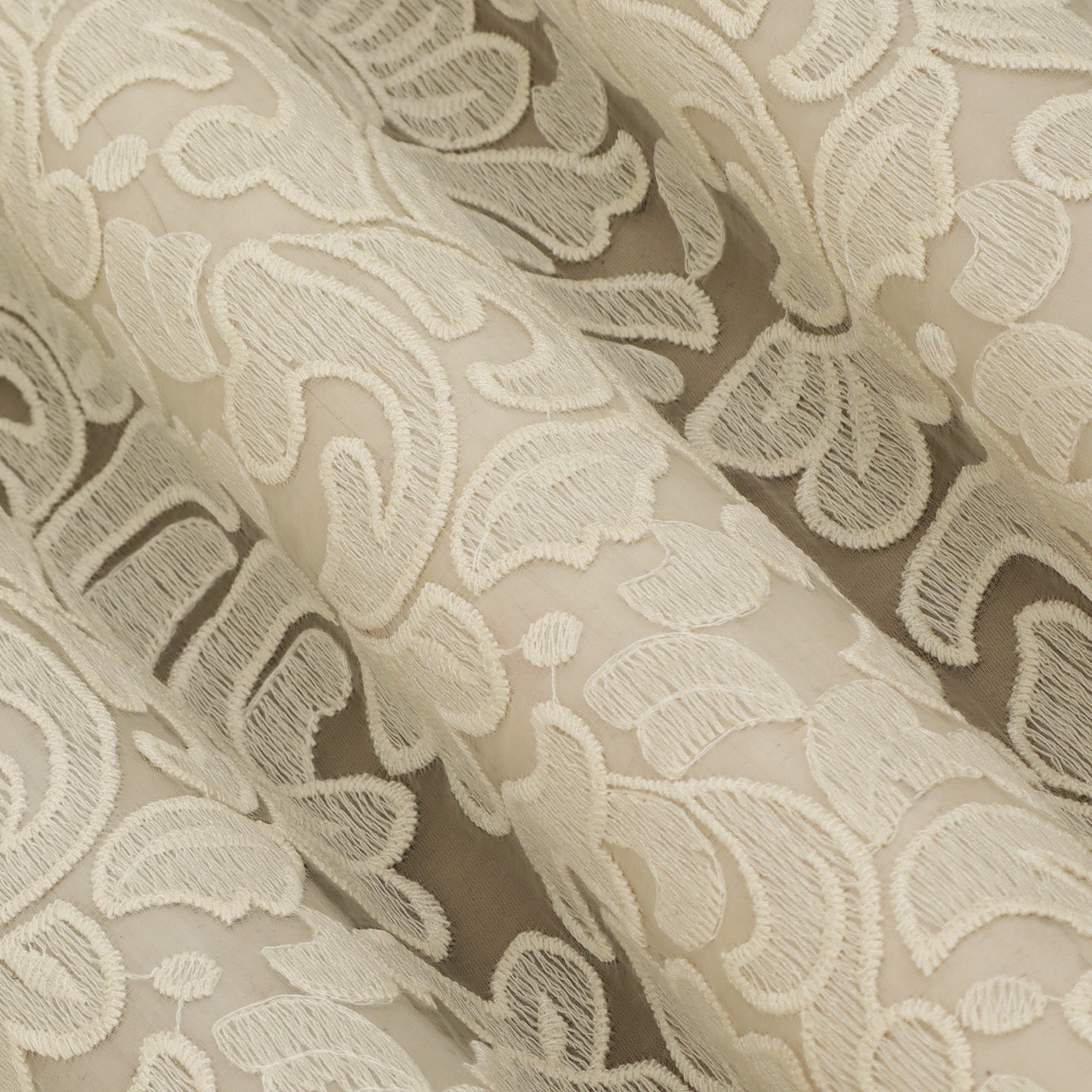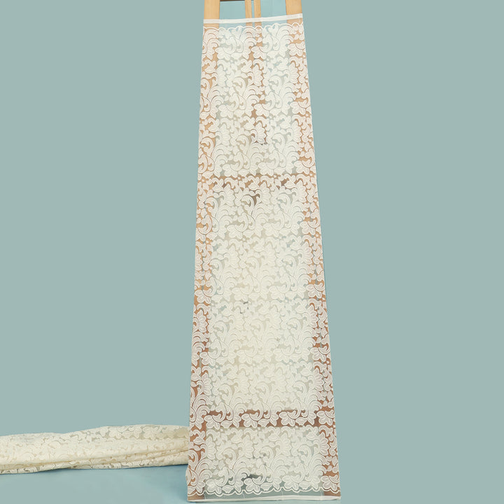 This Off White Color Organza Embroidery Fabric is perfect for adding a touch of elegance to any project. Made with high-quality material, it features intricate embroidery designs and a beautiful off white color. Its lightweight and sheer texture make it ideal for garments, home decor, and more. Enhance your creations with this luxurious fabric.