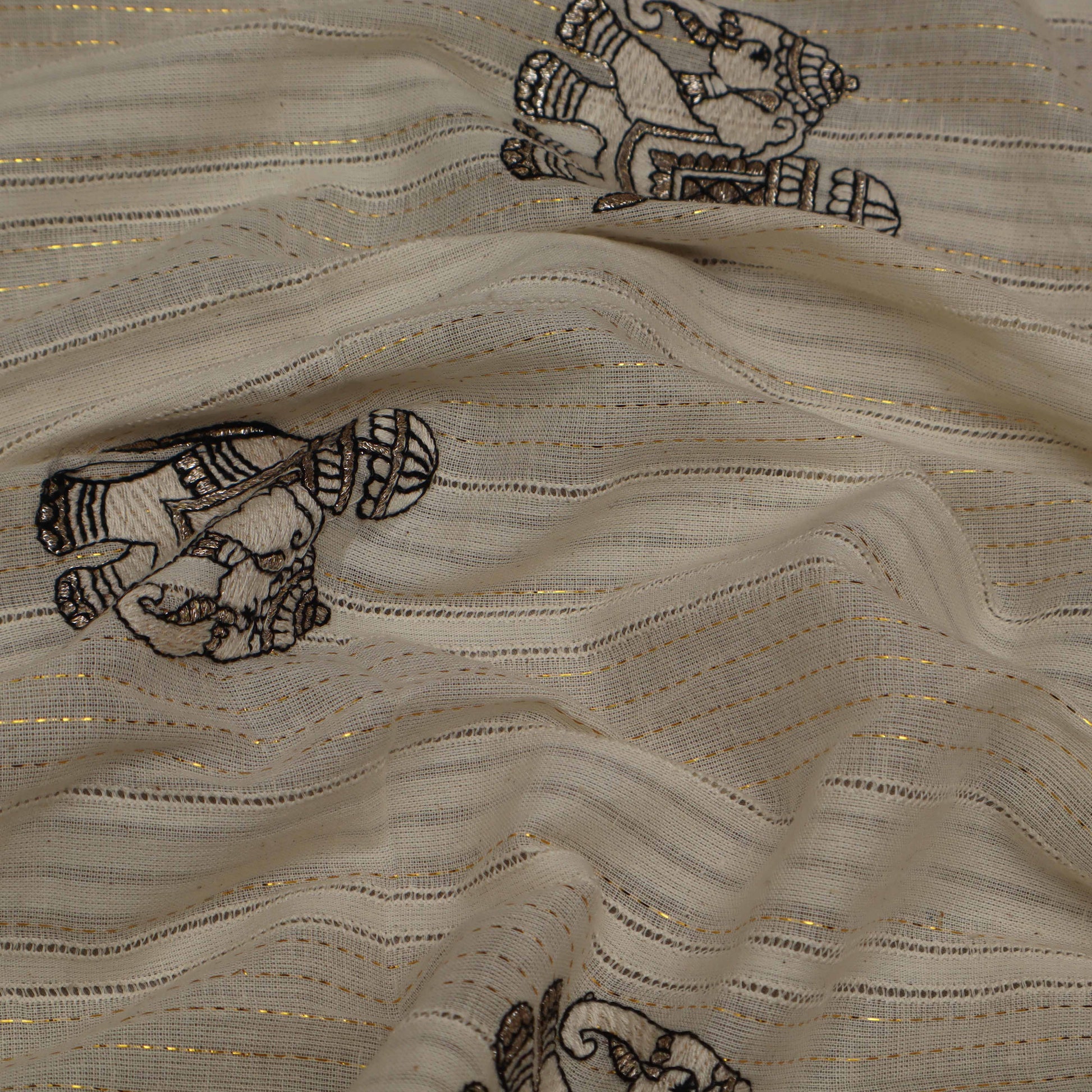 Off White Cotton Linen Jaquard Embroidery Fabric