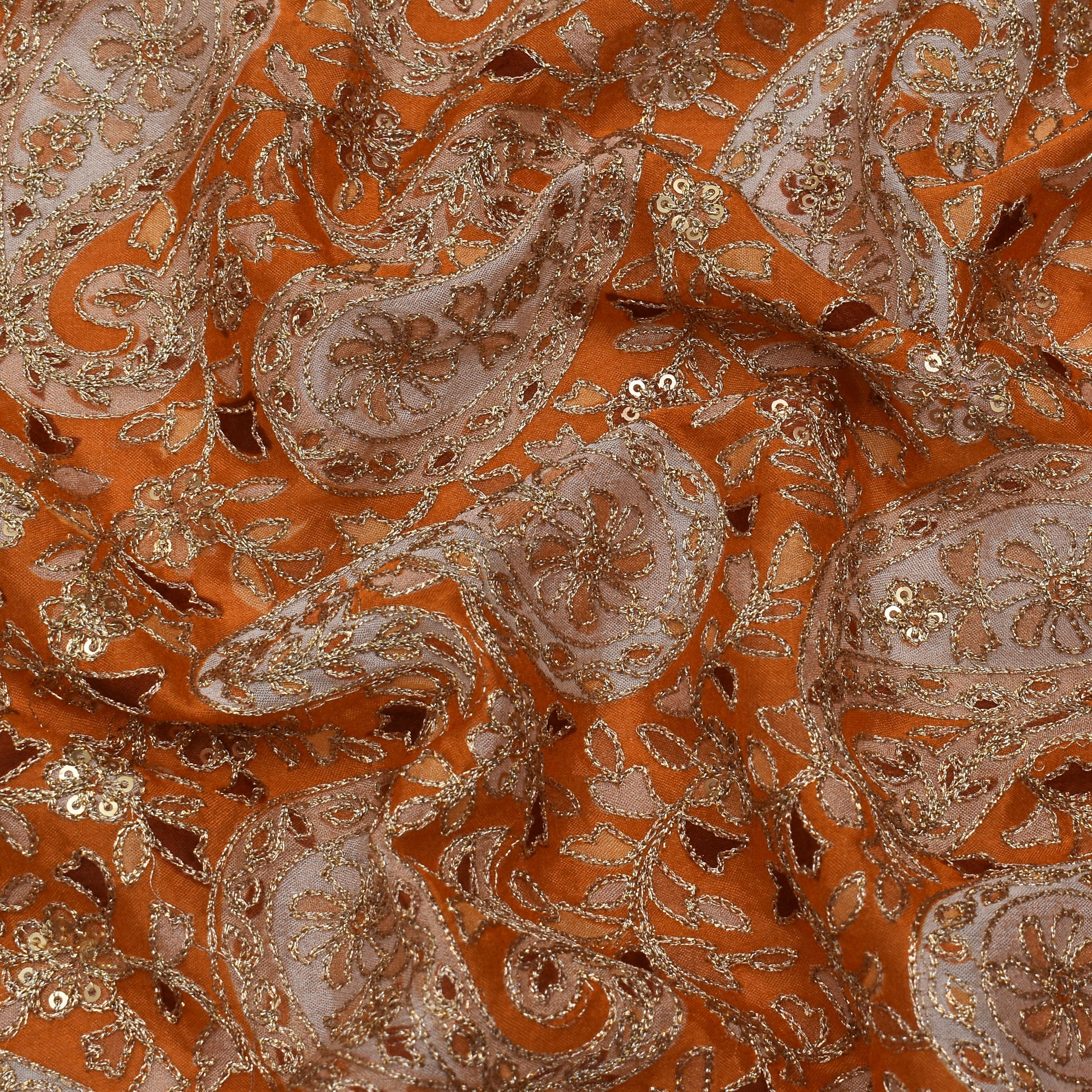 This Orange Color Chinon Position Print Embroidery Fabric is expertly crafted with vibrant orange hues and intricate embroidered prints. Made with high-quality materials, it's perfect for adding a touch of elegance and color to any sewing or design project. With its unique positioning and stunning color, this fabric is a must-have for any fashion or crafting enthusiast.