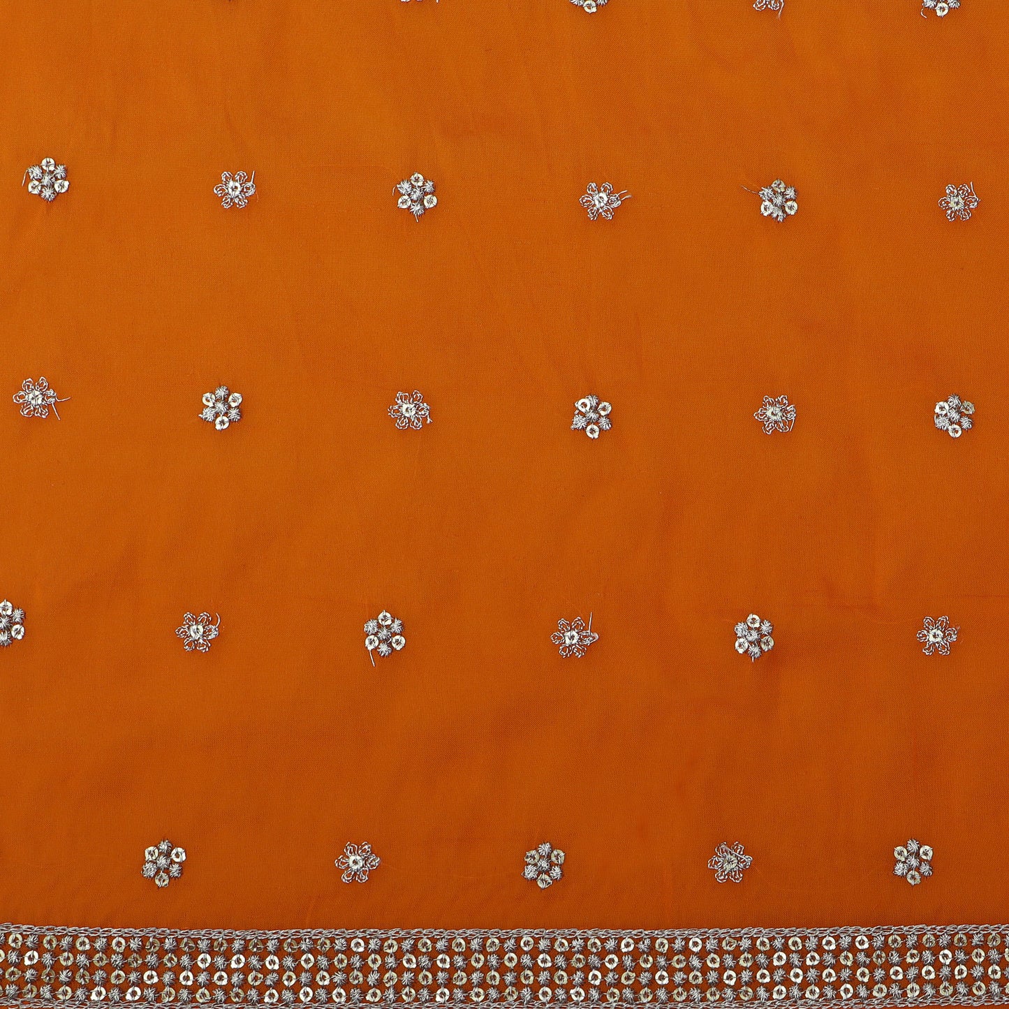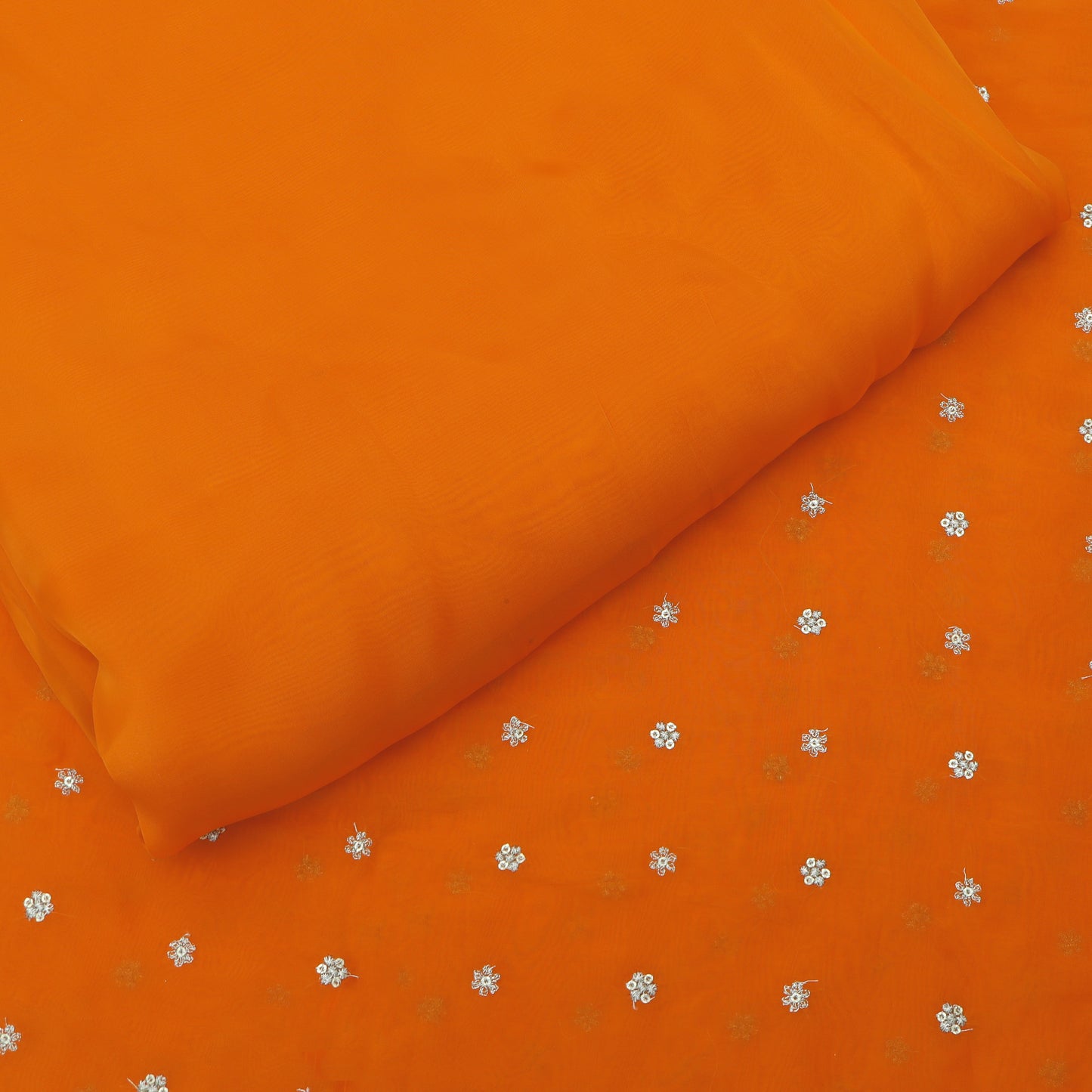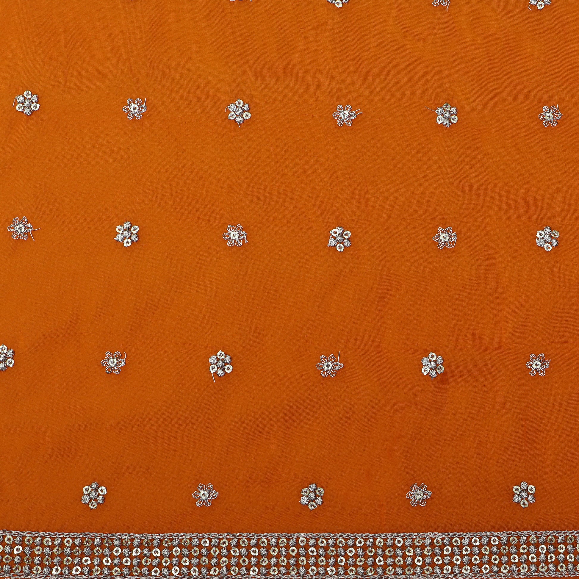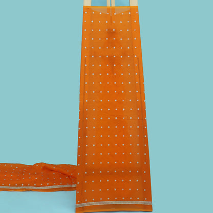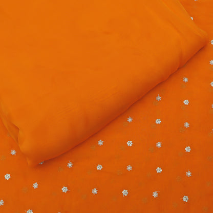 Expertly crafted from high-quality organza, this Orange Color Booti Fabric adds a touch of elegance to any project. Its vibrant color and intricate booti design bring a unique and sophisticated aesthetic to any garment or home decor item. Made from 100% polyester for a lightweight and durable fabric.