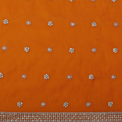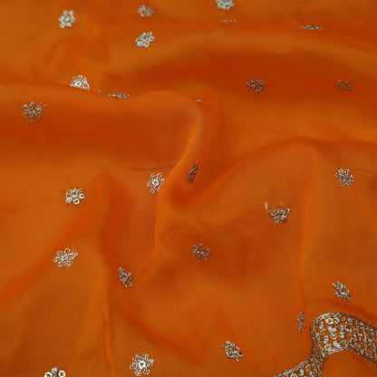 Orange Color Organza Booti Fabric