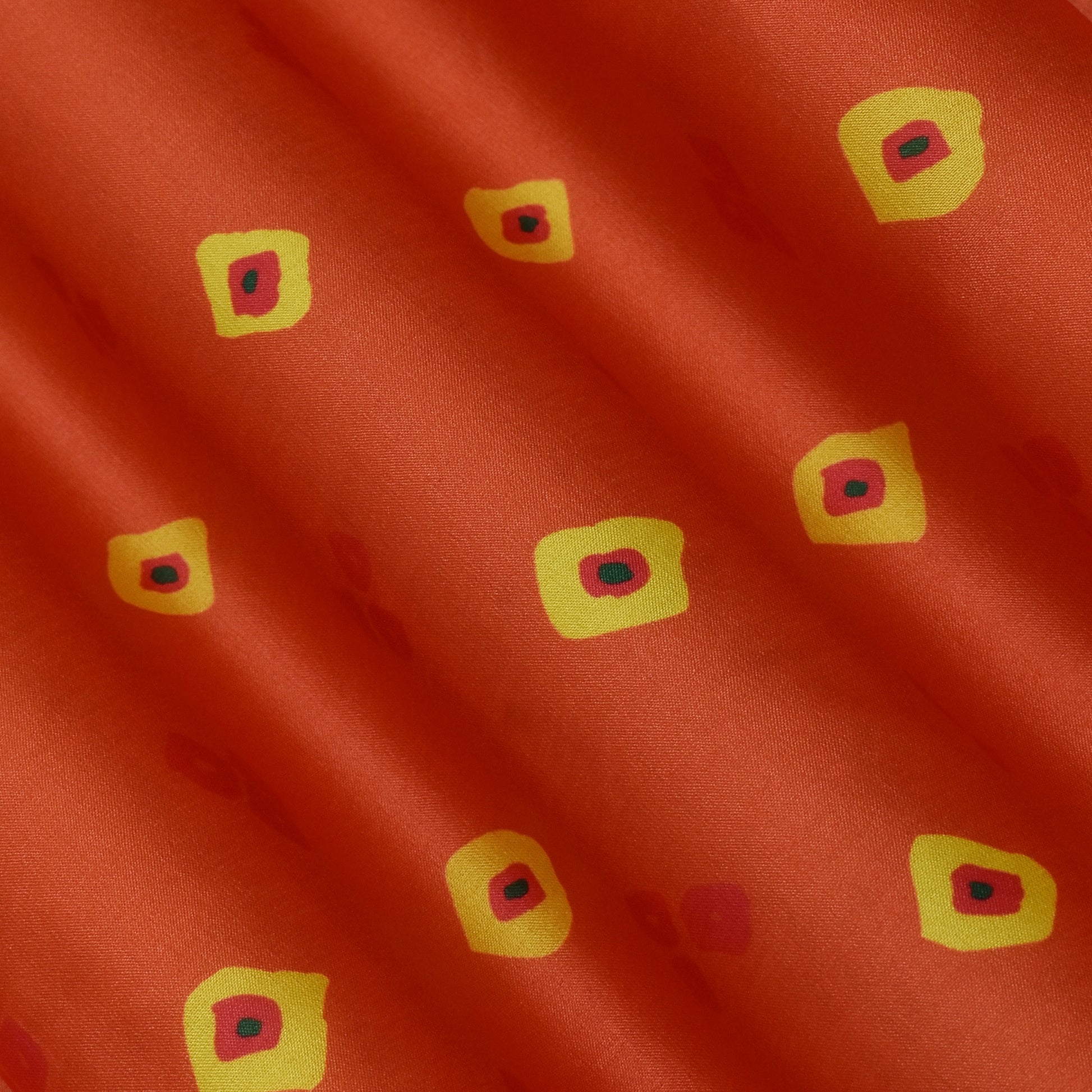 Expertly crafted from high-quality slub tussar, this vibrant orange fabric boasts a unique print that adds a touch of sophistication to any project. The natural texture and superior drape make it perfect for creating stylish and timeless garments. Elevate your sewing with this eye-catching and versatile fabric.