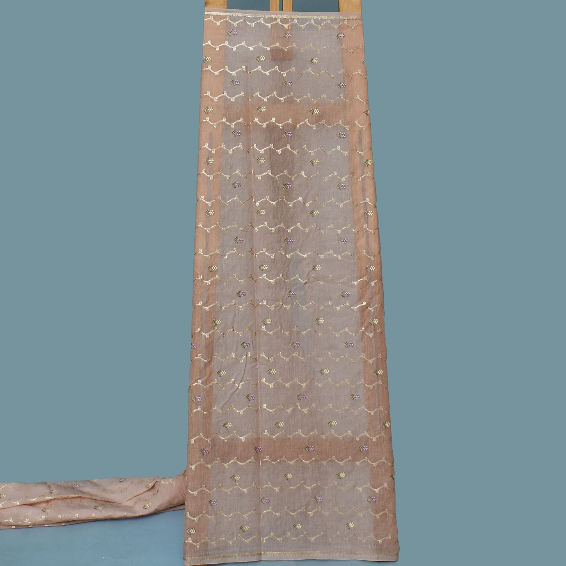 Expertly crafted with delicate embroidery, this Pale Pink Color Chanderi Fabric adds a touch of elegance to any outfit. Made from high-quality materials, it offers optimal comfort and a luxurious feel. Perfect for formal events or a casual day out, this fabric exudes sophistication and style.