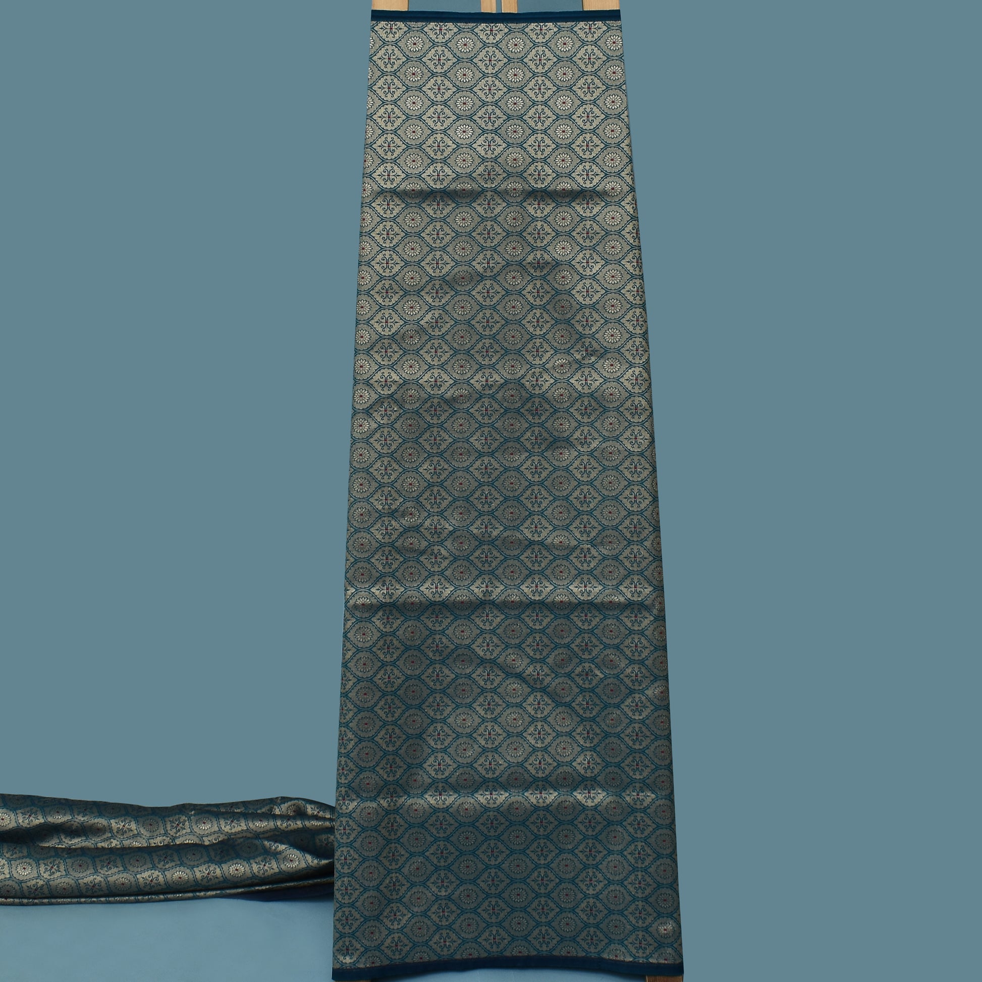 Pea Cock Blue Color Katan Meena Brocade Fabric