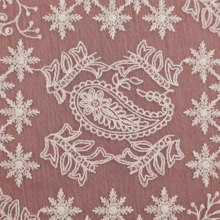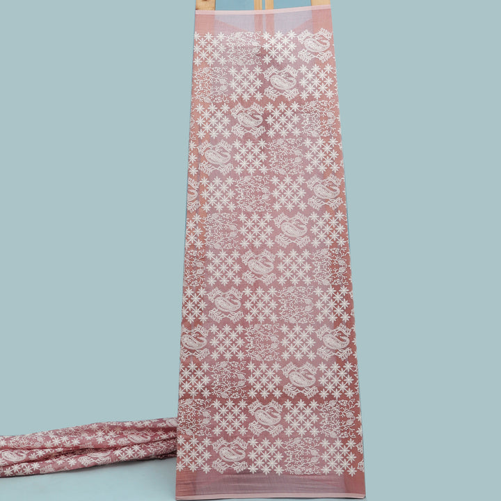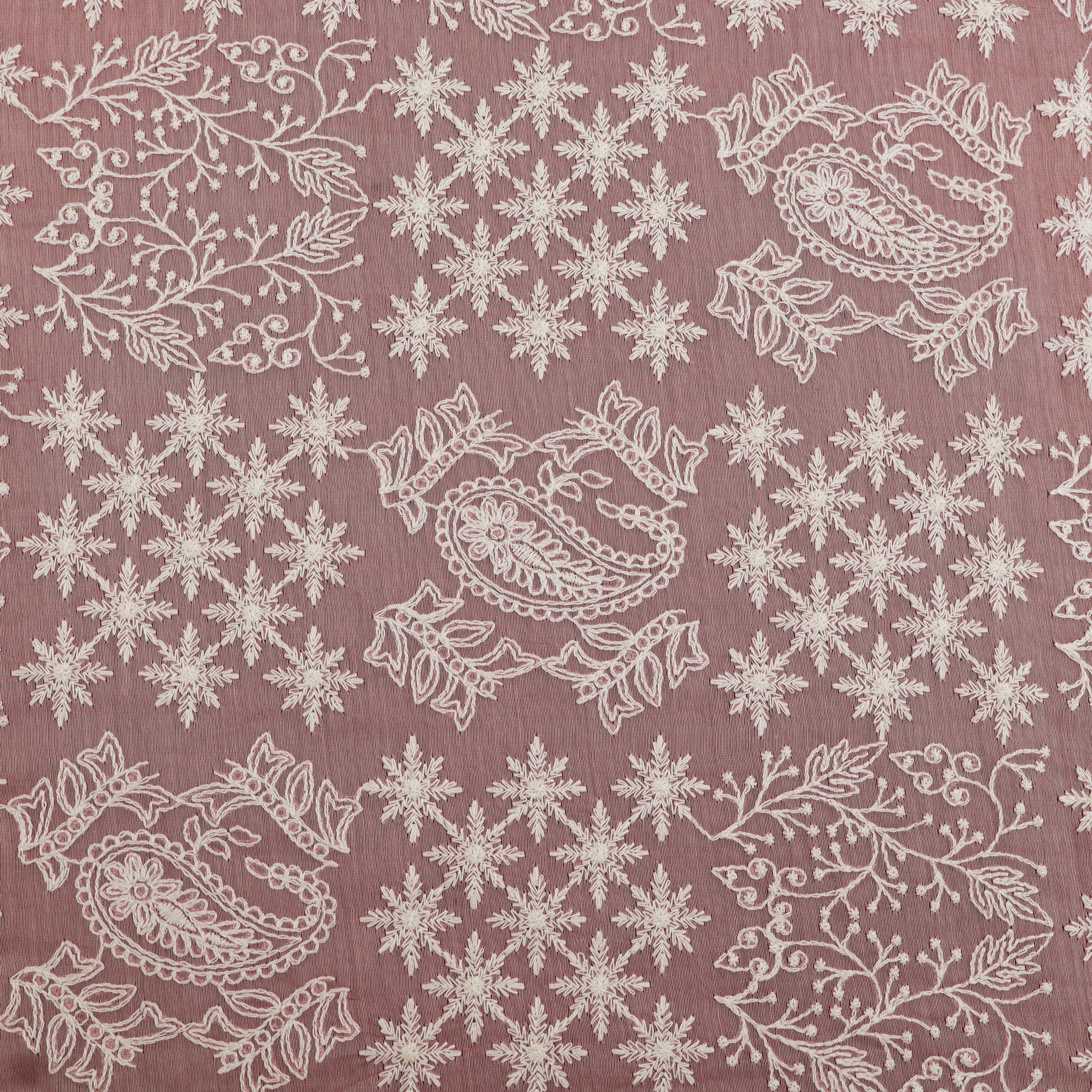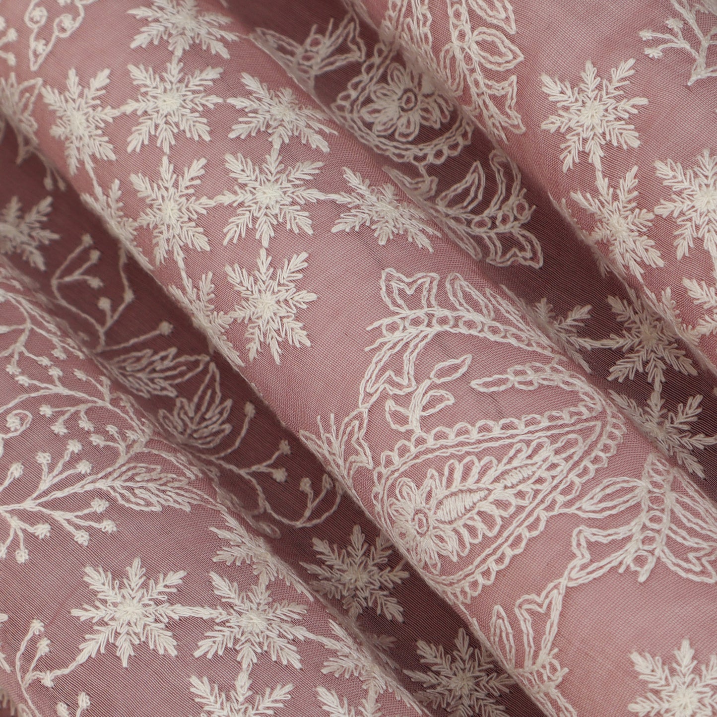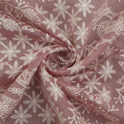 Flamingo Pink Color Chanderi Embroidery Fabric