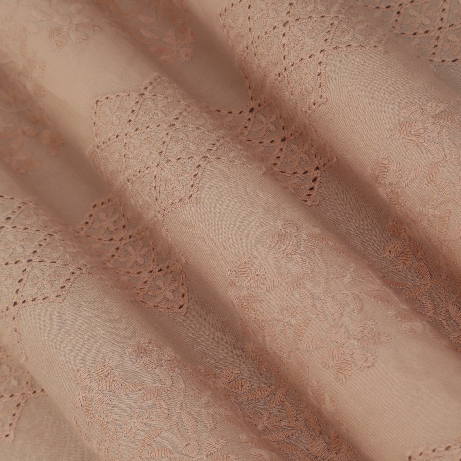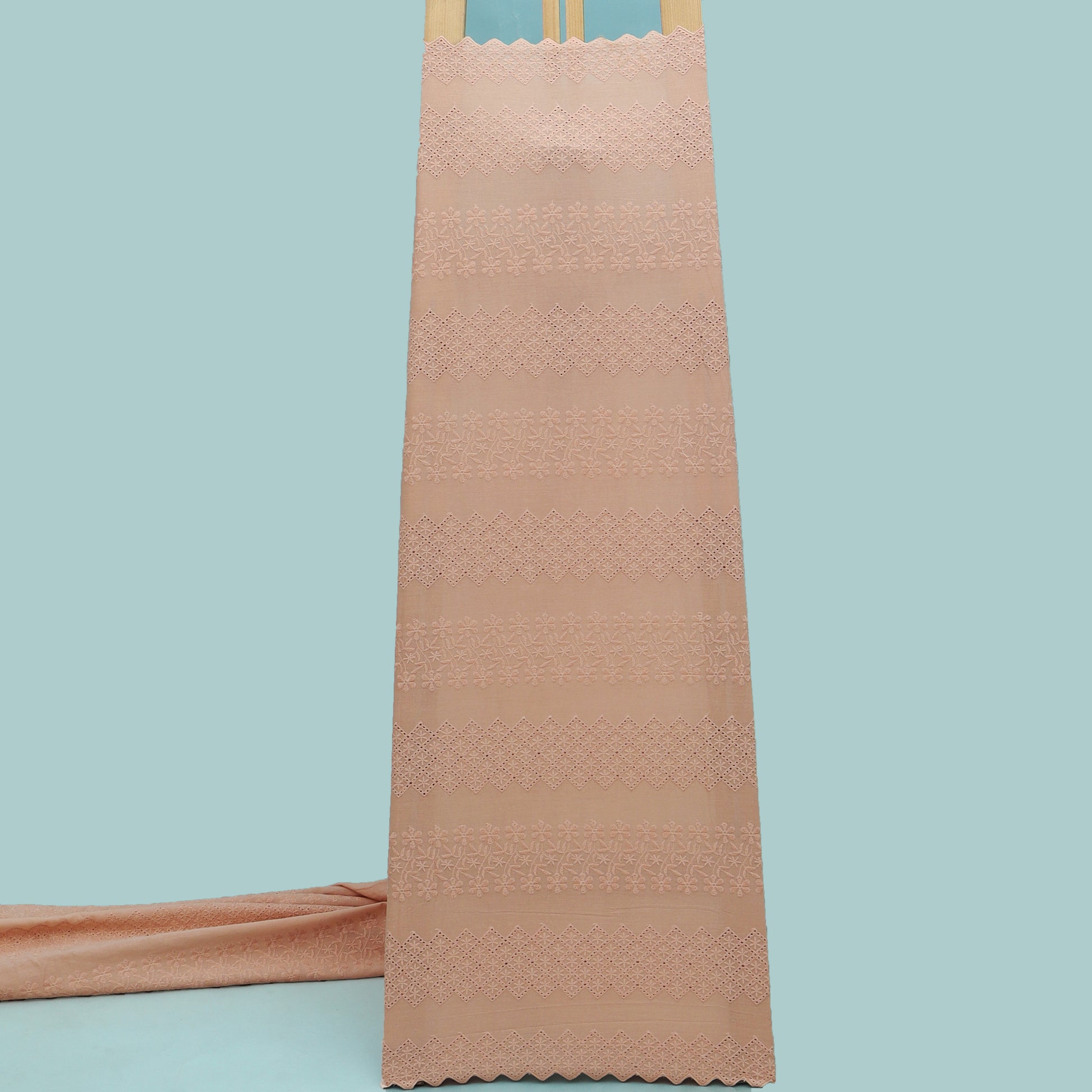 Peach Color Cotton Embroidery Fabric