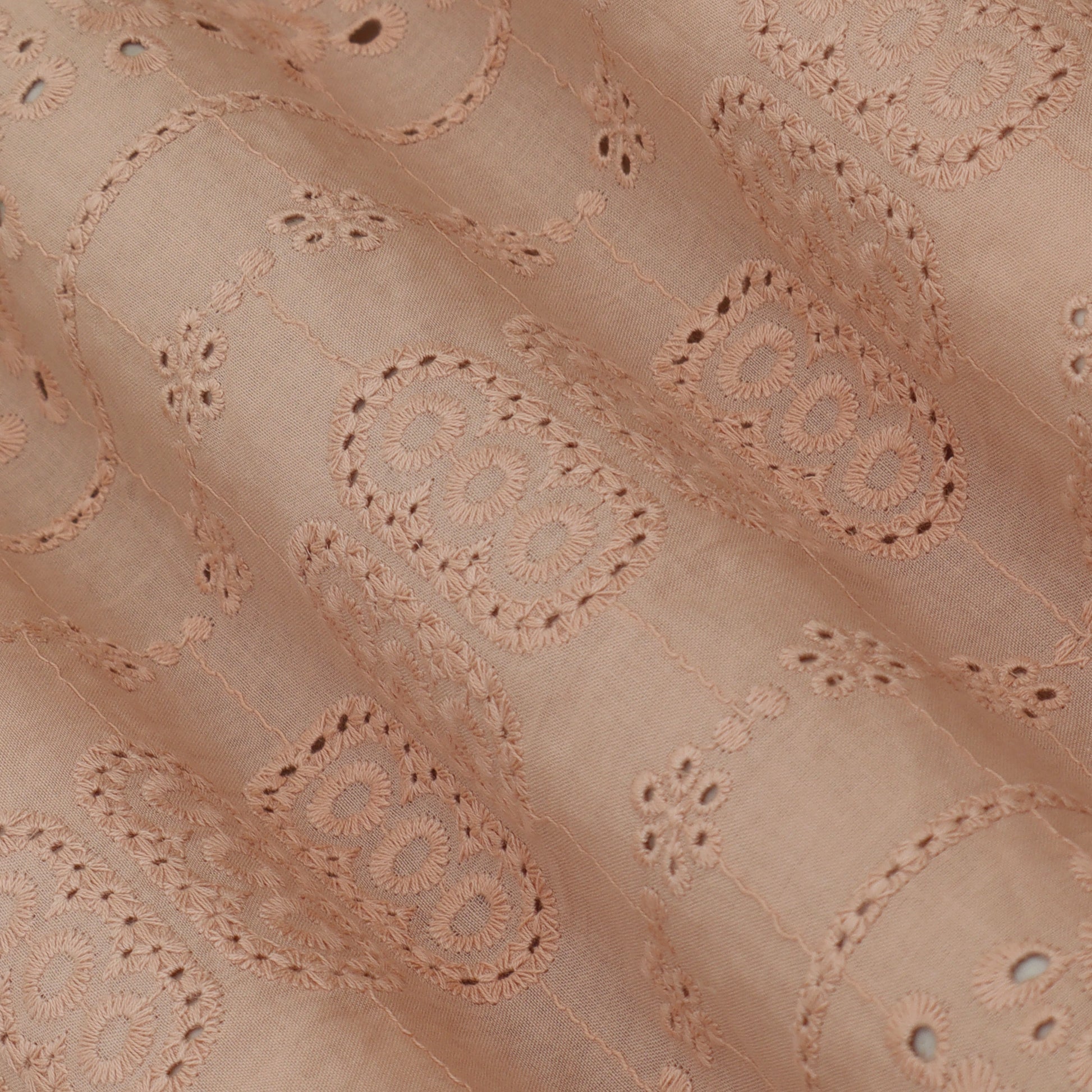 Peach Color Cotton Embroidery Fabric