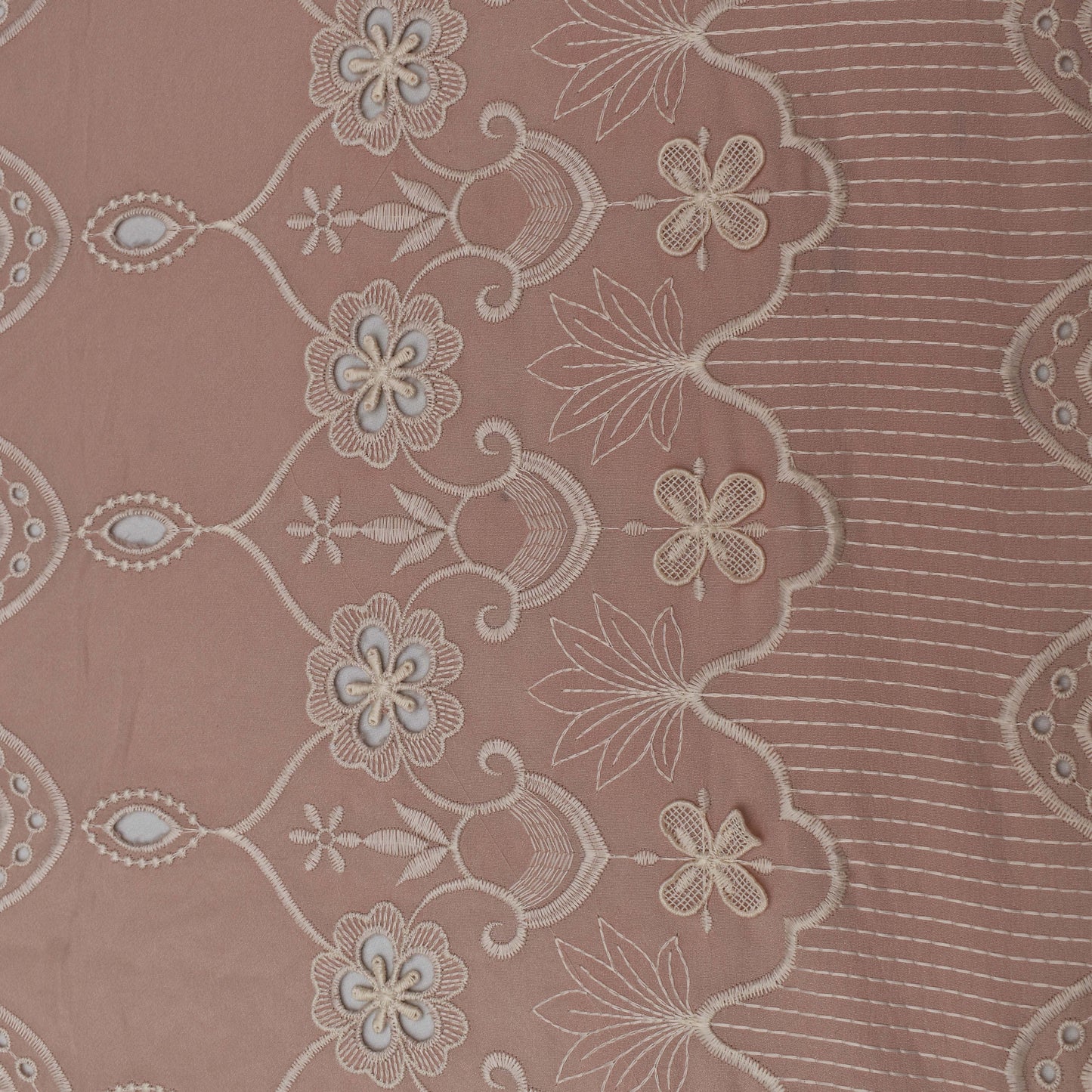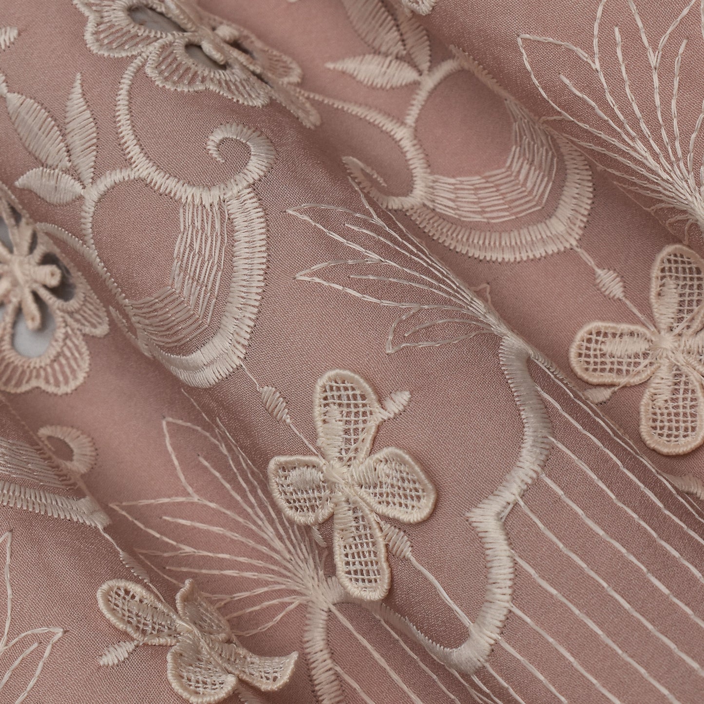 Peach Color Crepe Embroidery Fabric