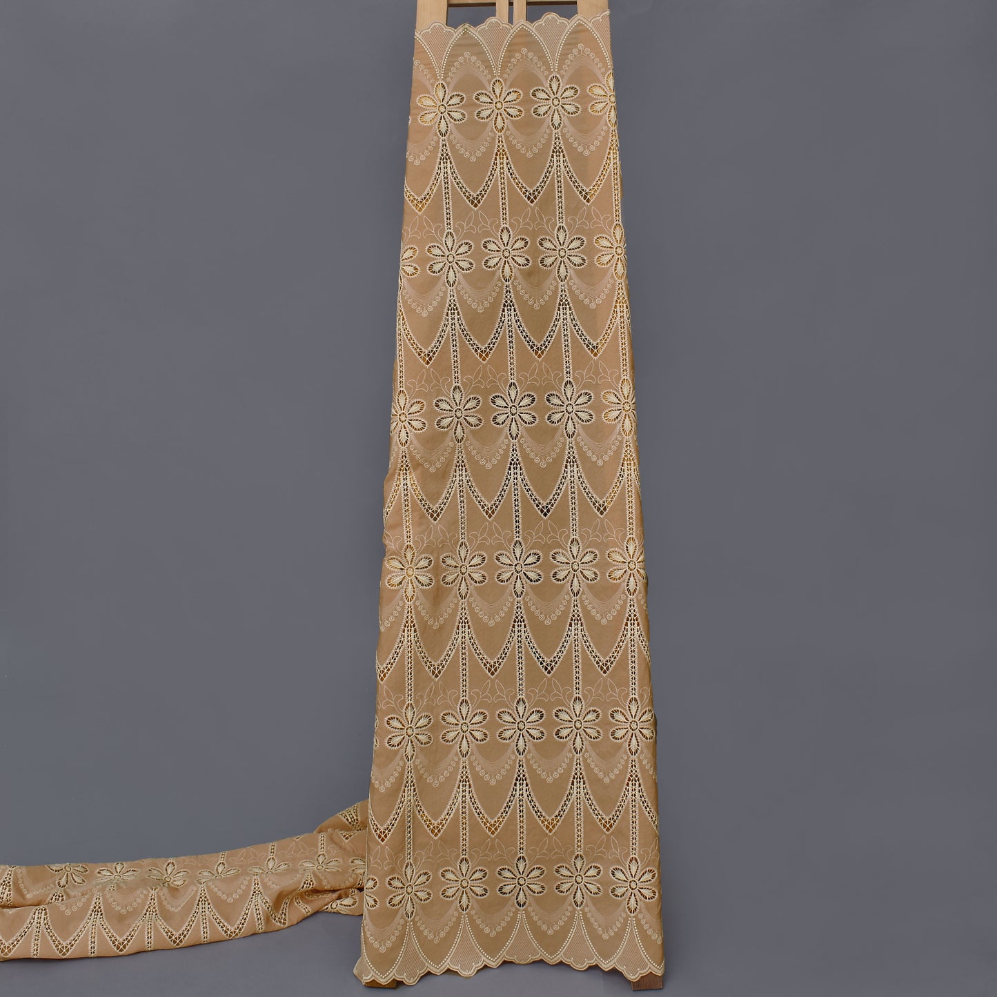 This Peach Color Crepe Embroidery Fabric is a beautiful and versatile fabric that is perfect for a variety of sewing and crafting projects. Made from high-quality crepe material, this fabric has a unique texture and is adorned with delicate embroidery. Whether you're creating a dress, blouse, or home decor item, this fabric will add a touch of elegance and sophistication. The soft peach color adds a feminine touch, while the crepe material provides a lightweight and breathable feel. Elevate your next project with this gorgeous Peach Color Crepe Embroidery Fabric.