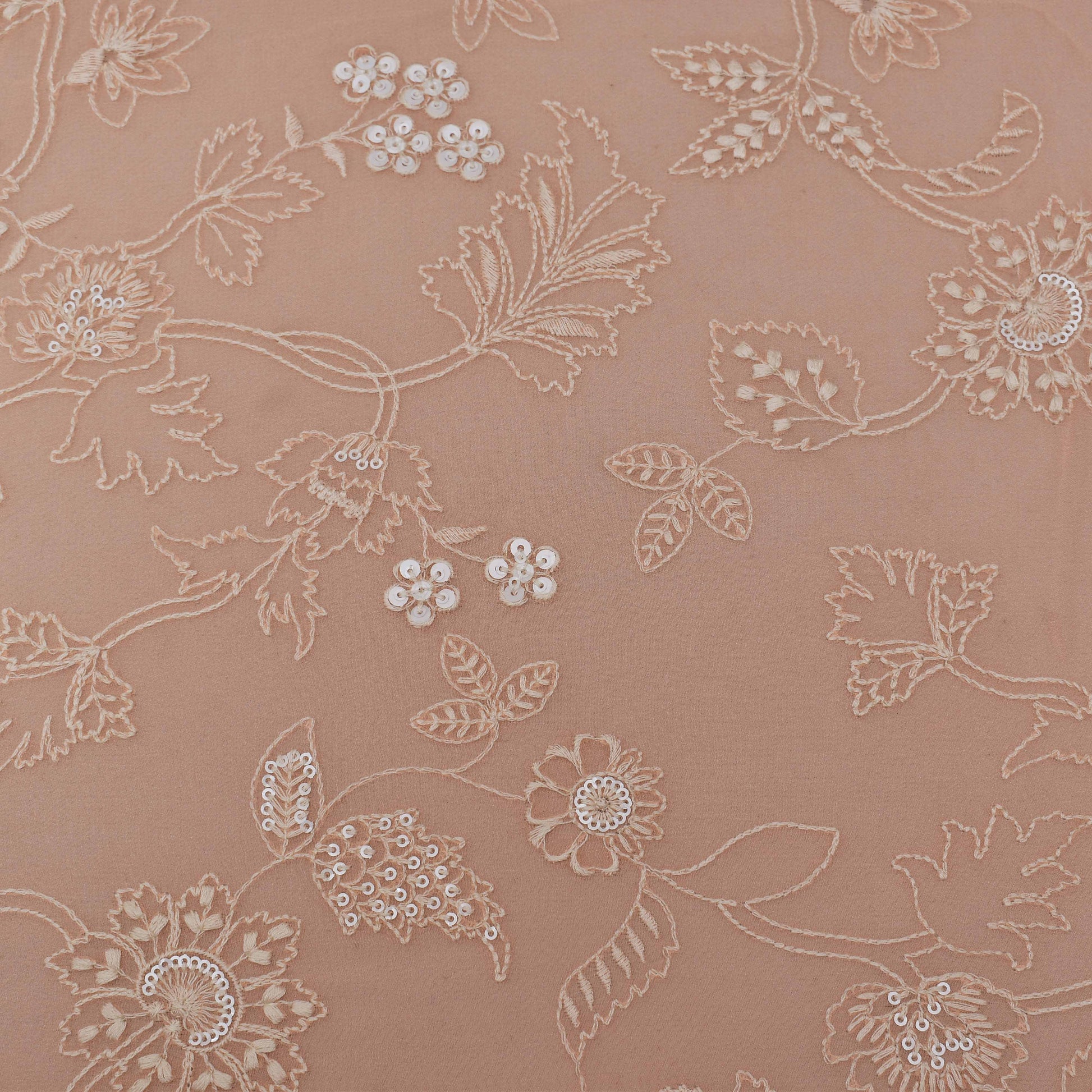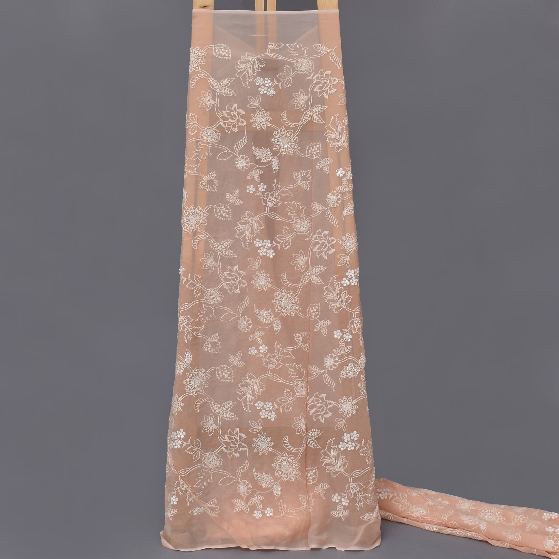 This Peach Color Georgette Embroidery Fabric is crafted from high-quality georgette fabric, adorned with delicate embroidered details. Perfect for creating elegant and stylish outfits, this fabric offers a soft and lightweight drape, making it comfortable to wear. Showcase your fashion expertise with this versatile fabric.