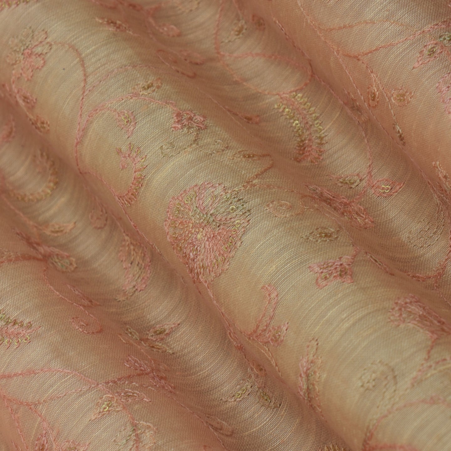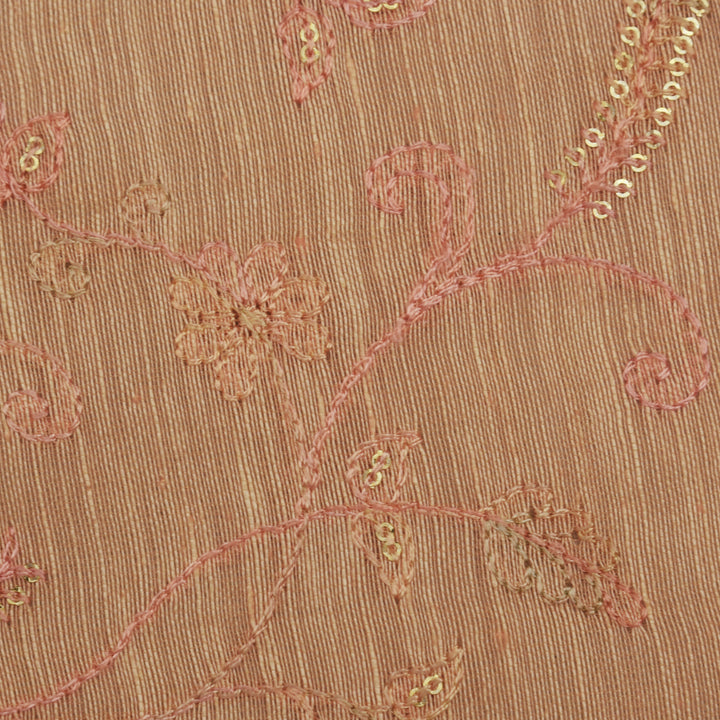 This Peach Color Noil Silk Embroidery Fabric is a luxurious and elegant addition to any fabric collection. Made with high-quality silk and intricate embroidery, this fabric offers both durability and style. With its subtle peach color, it adds a touch of sophistication to any project.