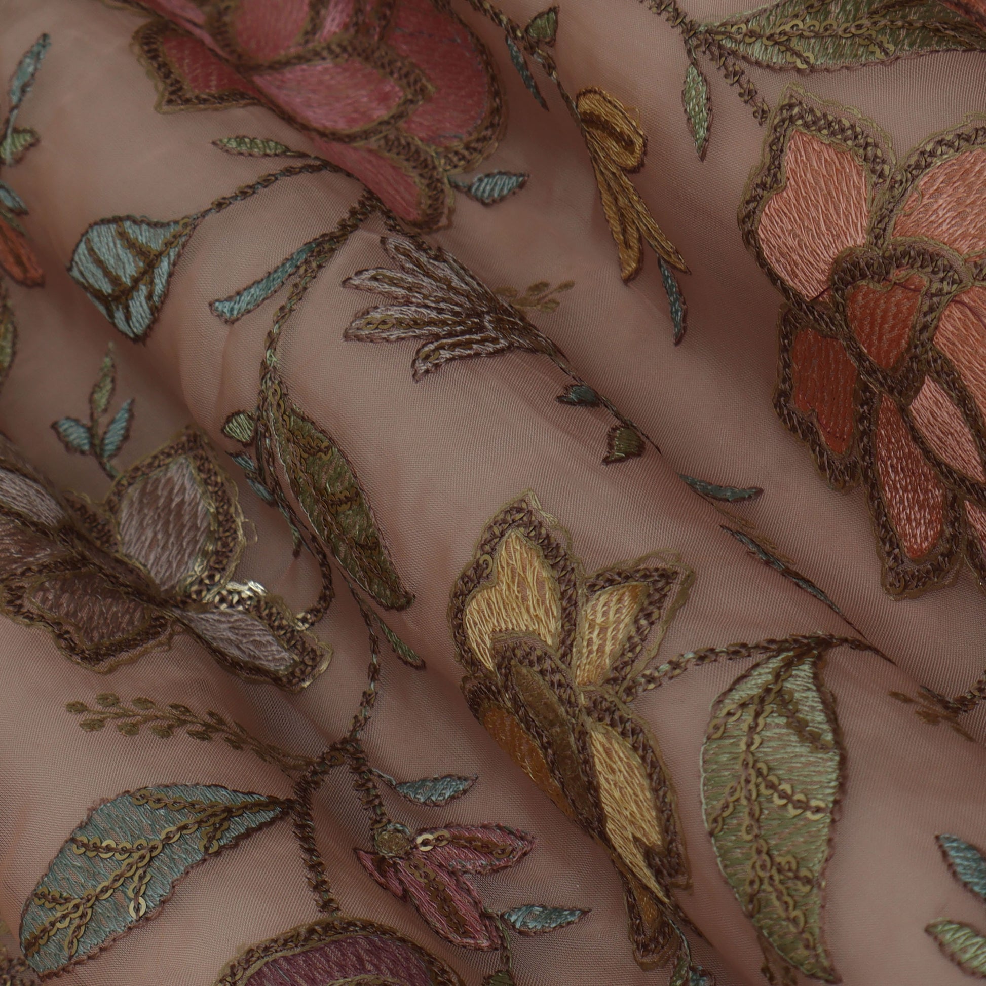 Discover the unparalleled elegance of our Peach Color Organza Embroidery Fabric. Crafted from high-quality materials, this fabric boasts delicate embroidery that adds a touch of sophistication to any project. Perfect for creating stunning garments and home decor. Take your creations to the next level with this luxurious fabric.