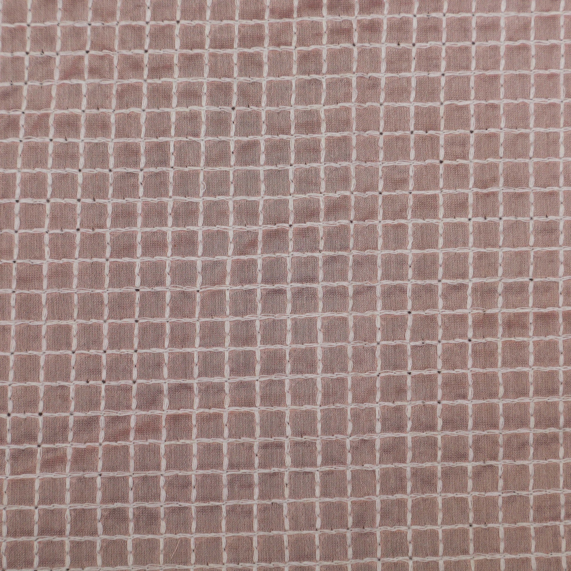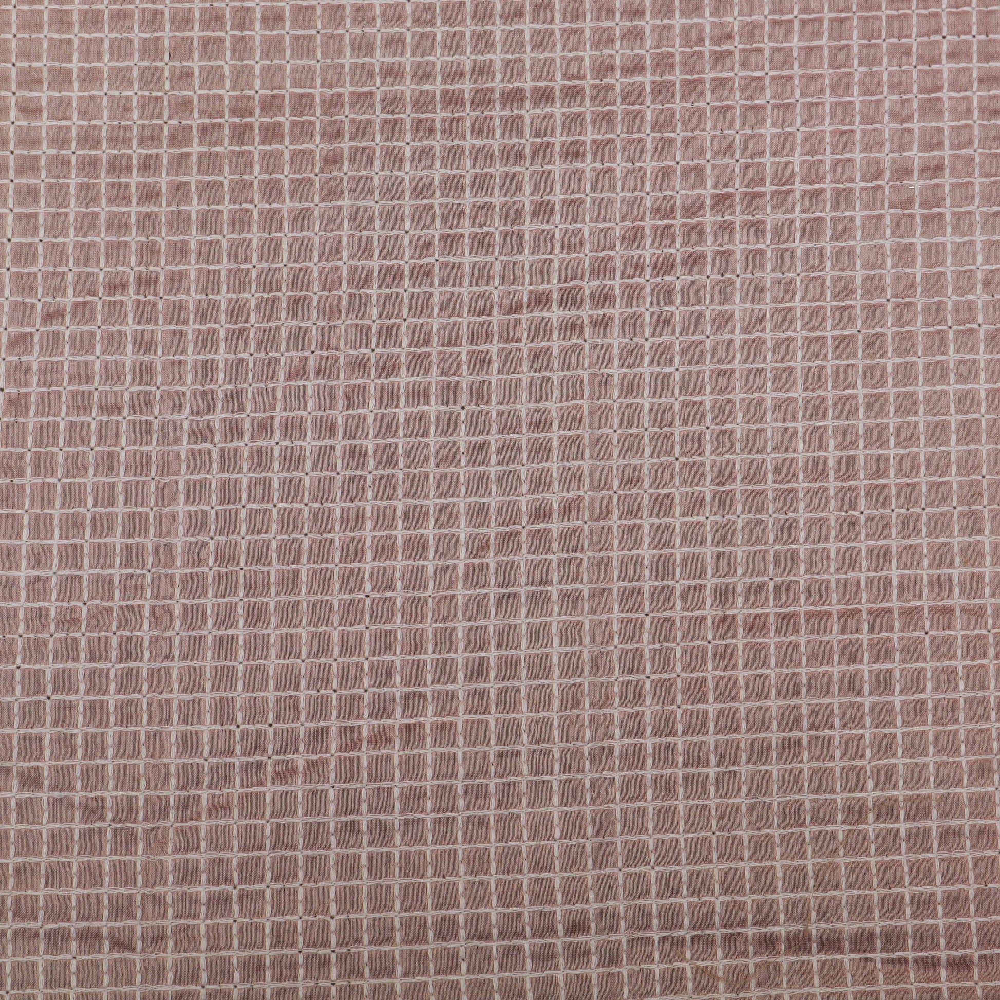 Pink Color Chanderi Check Embroidery Fabric