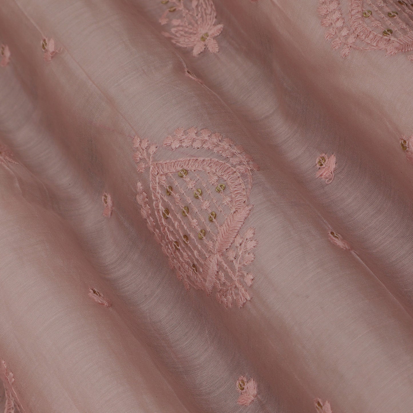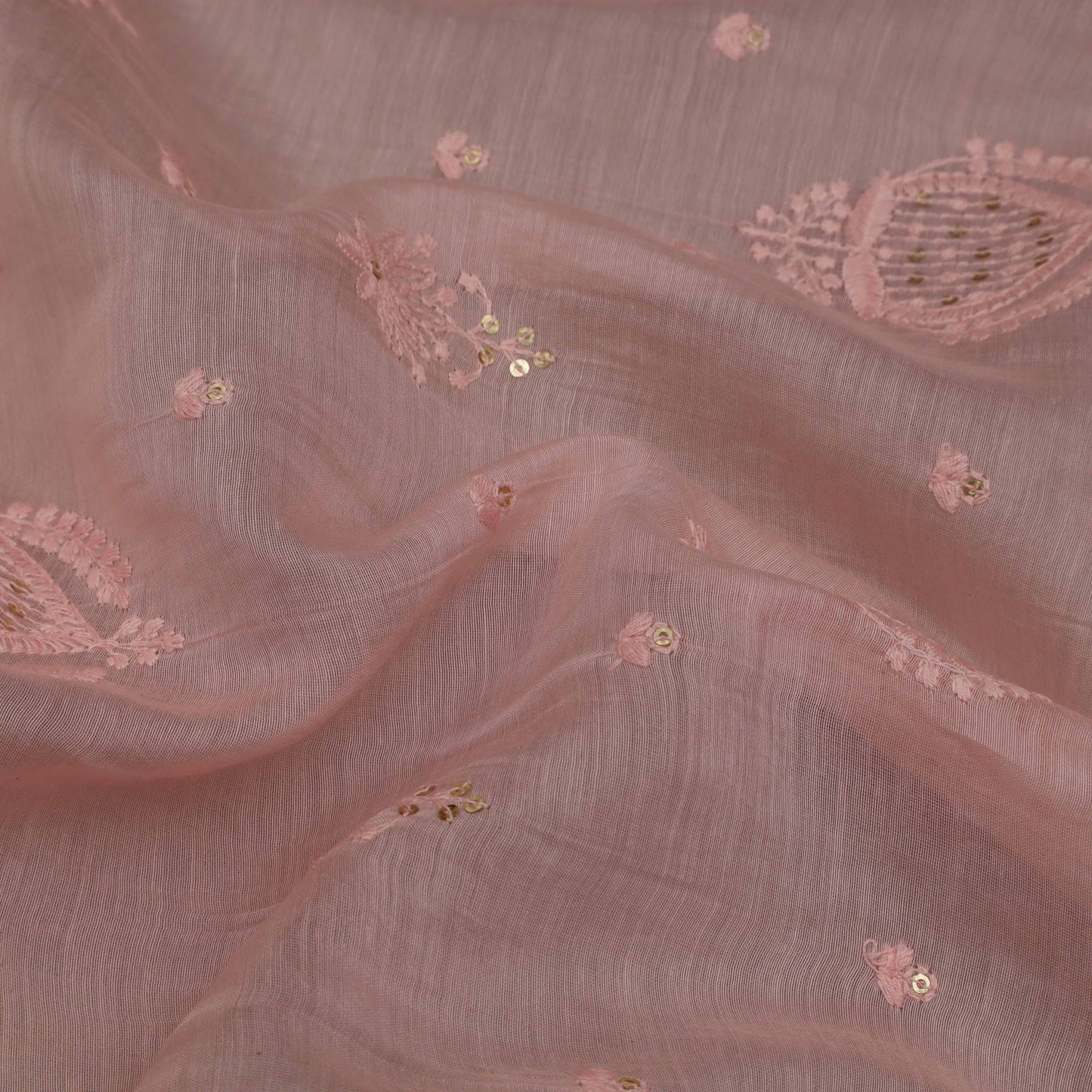 Pink Color Chanderi Embroidery Fabric