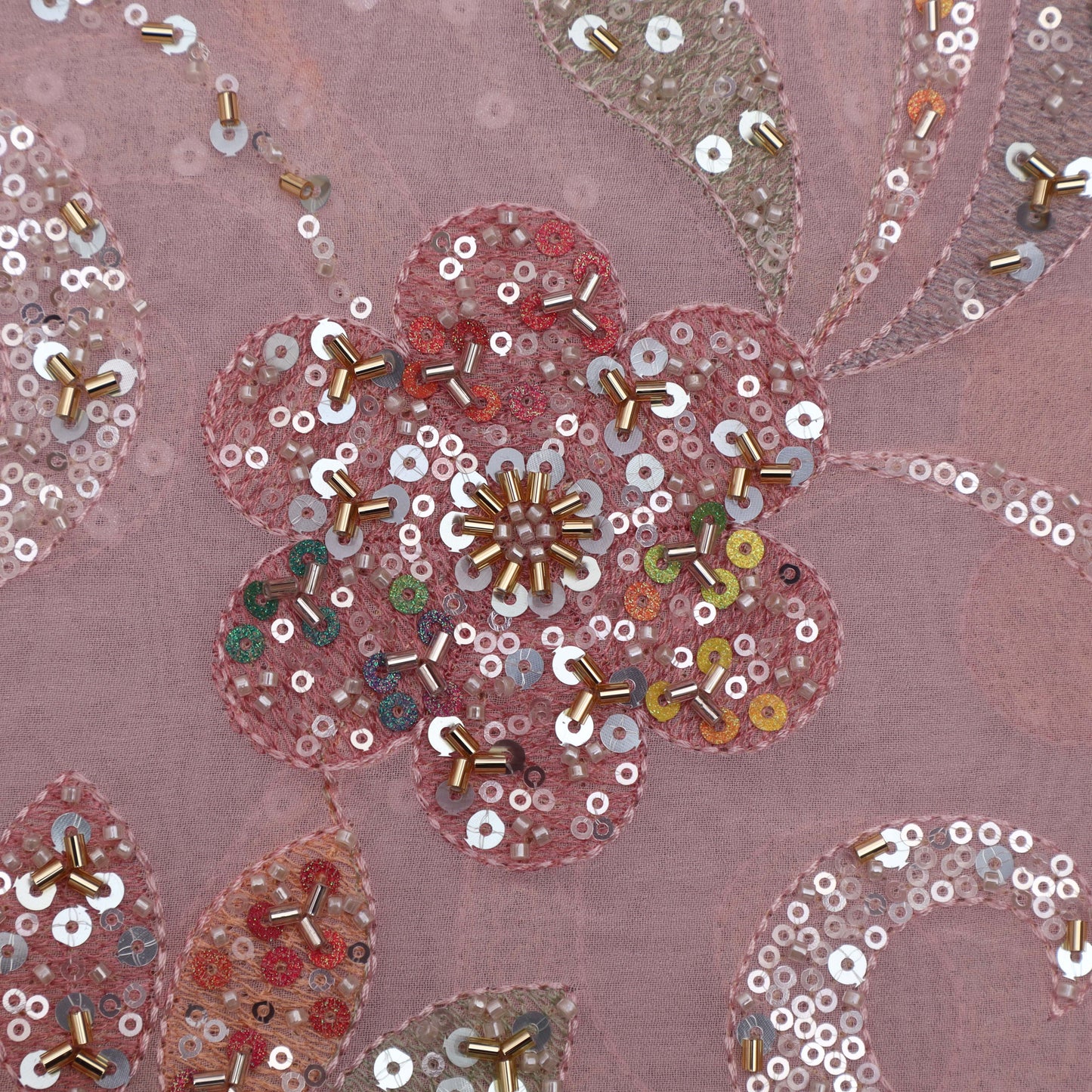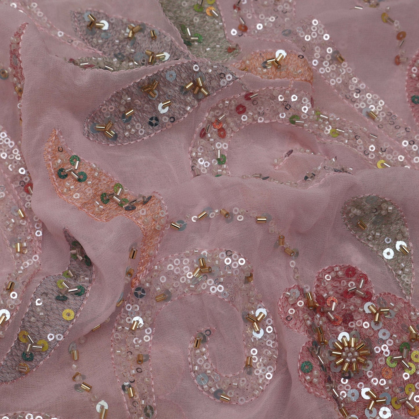 Pink Color Georgette Sequins Embroidery Fabric