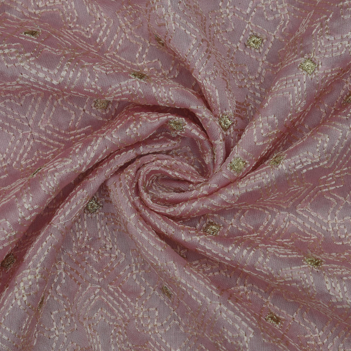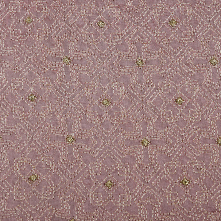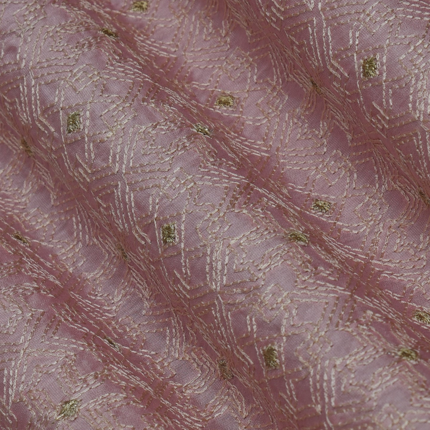 Pink Color Kora Silk Chanderi Embroidery Fabric