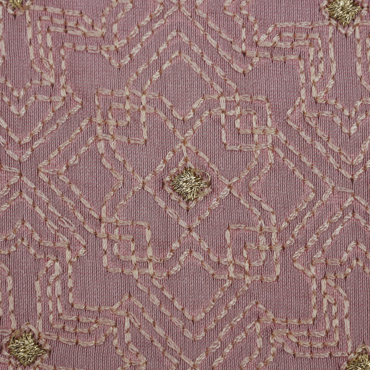 This Pink Color Kora Silk Chanderi Embroidery Fabric is made from the finest quality silk and features intricate embroidery designs. Experience the luxurious feel of silk while showcasing the beautiful embroidery on your next project. Perfect for creating elegant and stylish garments, this fabric is sure to impress.