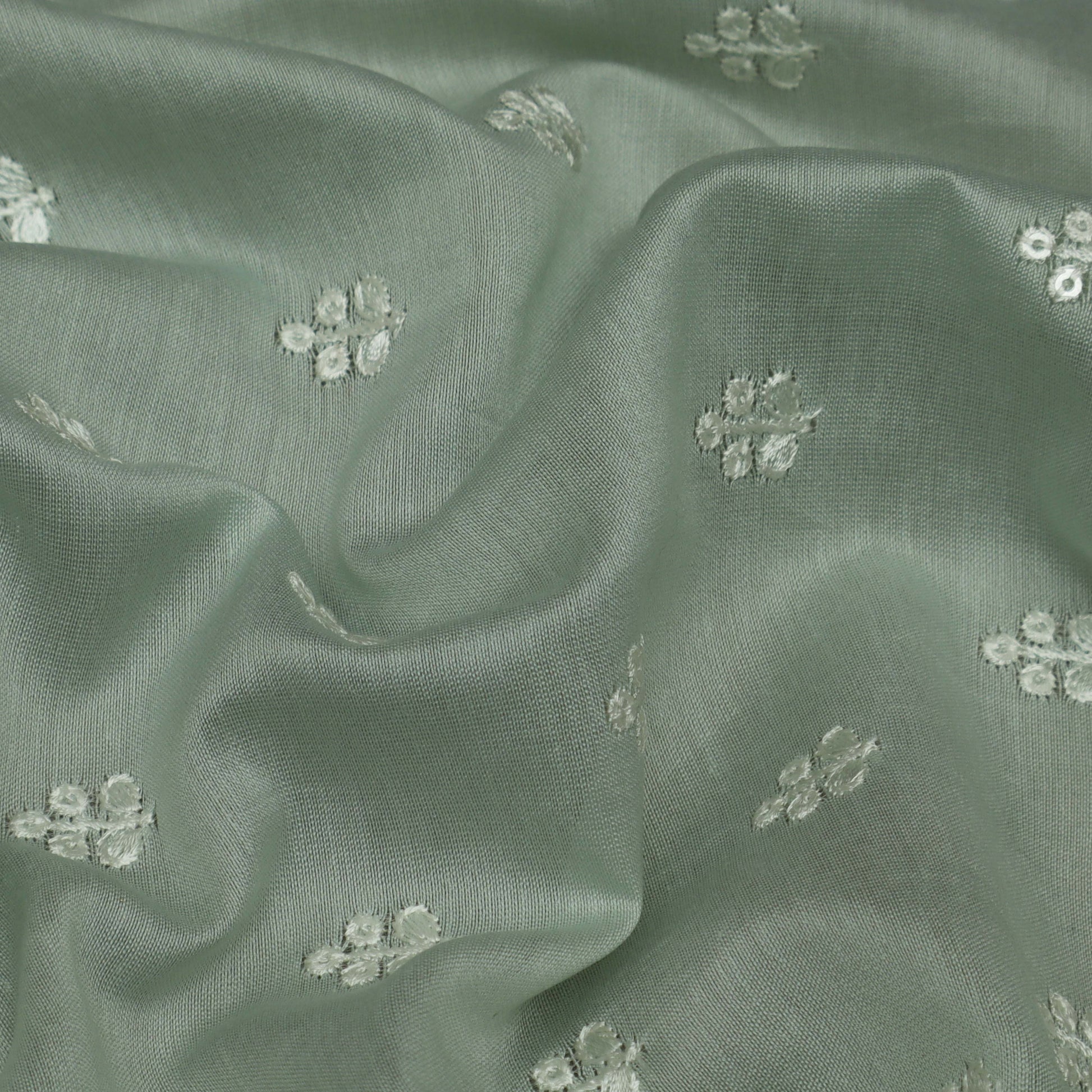 Pista Green Color Chanderi Embroidery Fabric