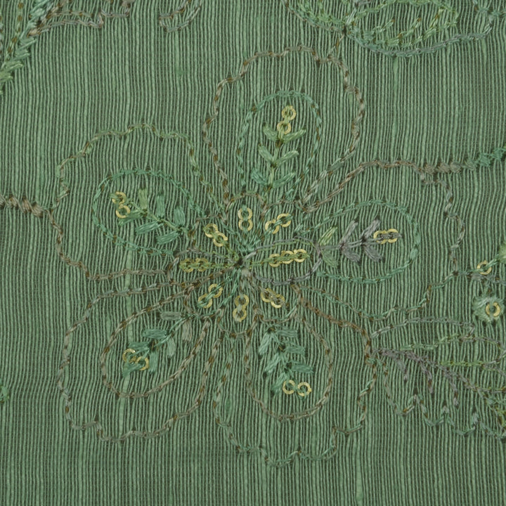 This Pista Green Color Noil Silk Embroidery Fabric is expertly crafted and weaves together a beautiful blend of colors. The result is a luxurious and durable fabric with a unique texture, perfect for adding a touch of elegance to any project. Made from high-quality silk, this fabric is both lightweight and breathable, providing comfort and style in any season. Indulge in the benefits of soft and sustainable silk with this exquisite embroidery fabric.